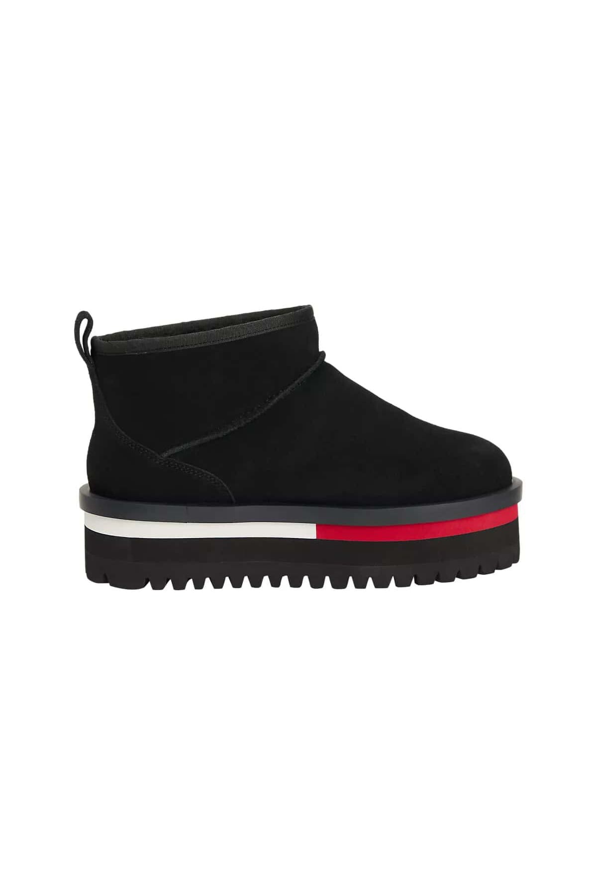 Soğuk havalarda hem ayaklarınızı sıcak tutacak hem de stilinize iddialı bir yükseklik katacak bu platform kar botu, kış gardırobunuzun yıldız parçası olacak. Yumuşak süet üst yüzeyi lüks bir dokunuş ve konfor sunar. Tüm dikkatleri üzerine çeken platform taban, ortasındaki renk bloklu şeridiyle tasarıma enerjik ve ikonik bir karakter kazandırır. Tırtıklı yapısıyla güçlü bir zemin tutuşu sağlayan tabanı, karlı zeminlerde bile güvenli adımlar atmanızı sağlar.