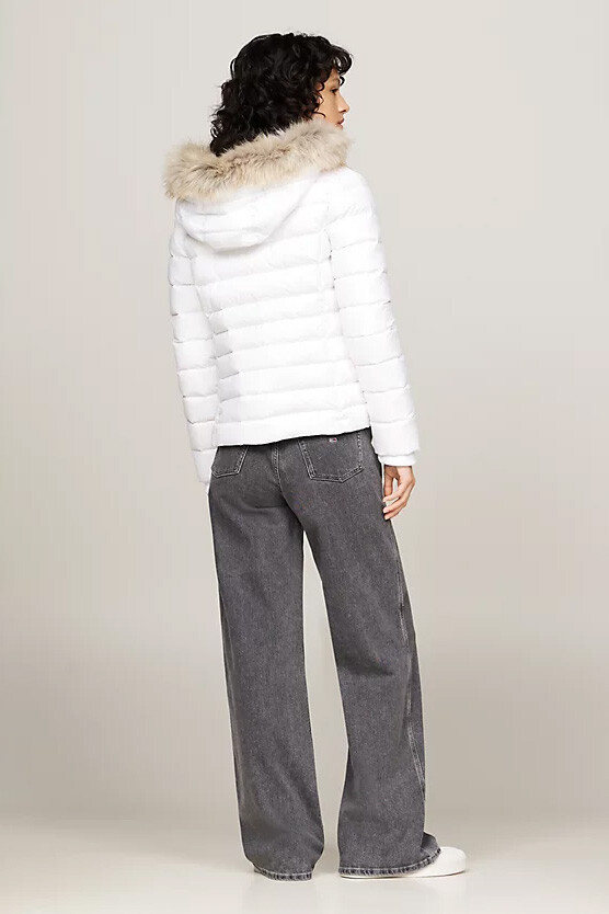 Kadın Suni Kürk Kapüşonlu Kaz Tüyü Dolgulu Mont - Beyaz