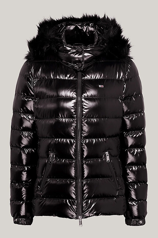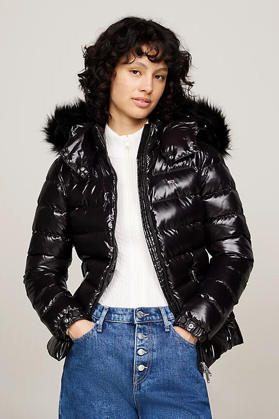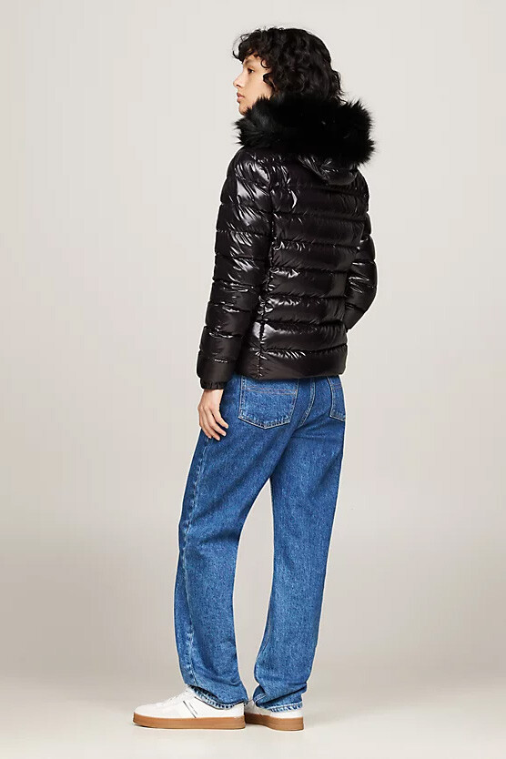 Kadın Suni Kürk Kapüşonlu Şişme Ceket - Siyah