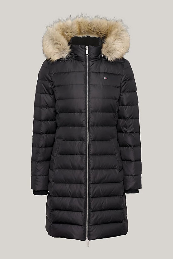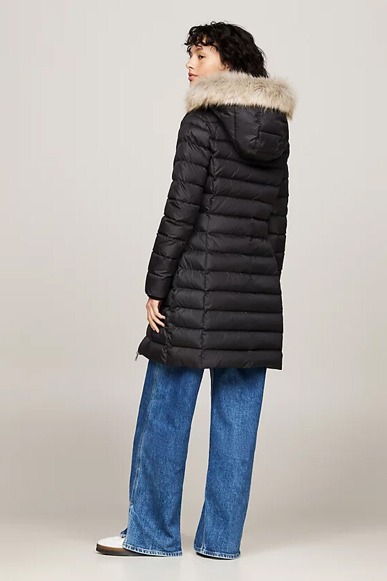 Kadın Suni Kürklü Kapşonlu Kaban - Siyah