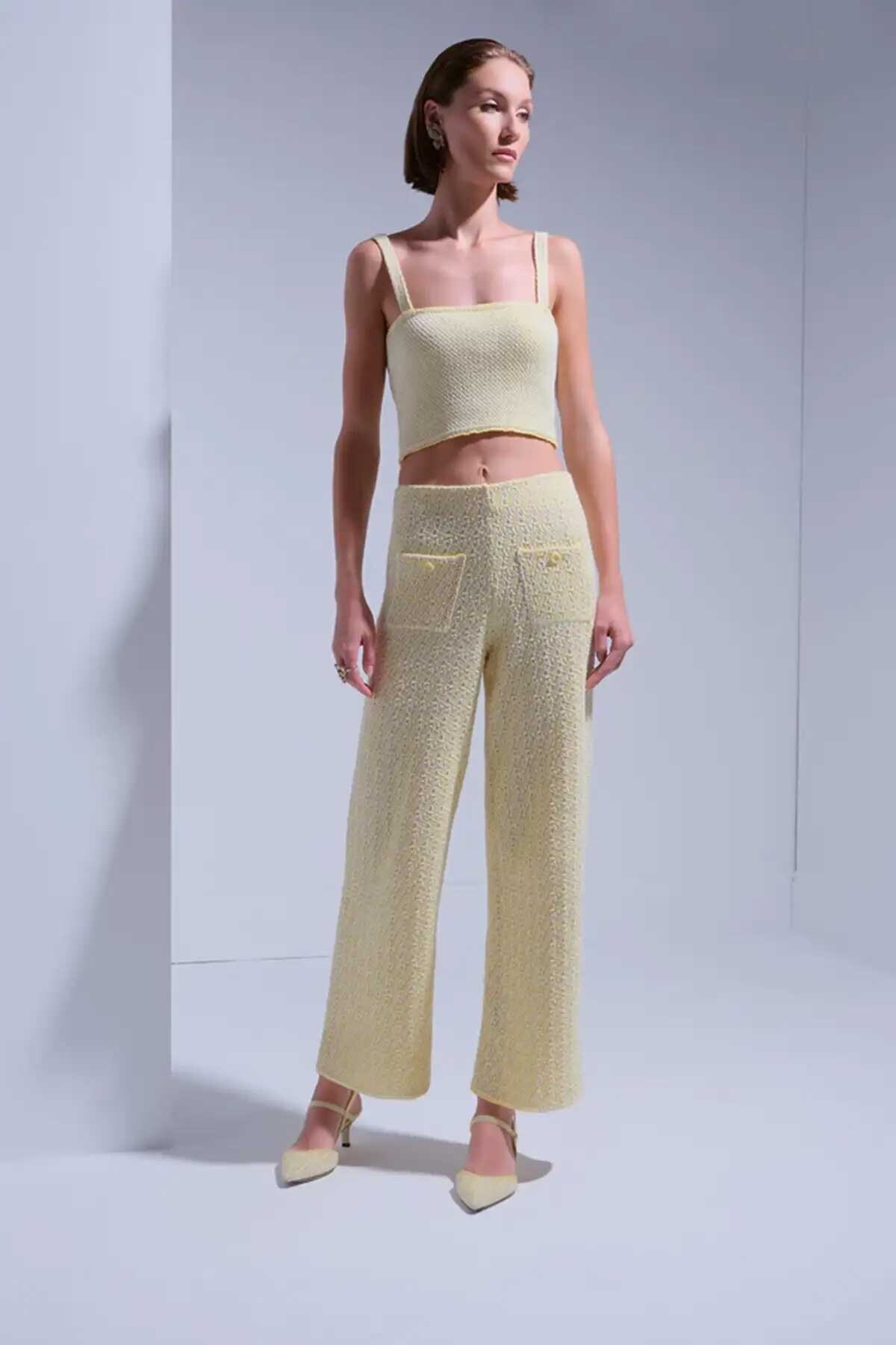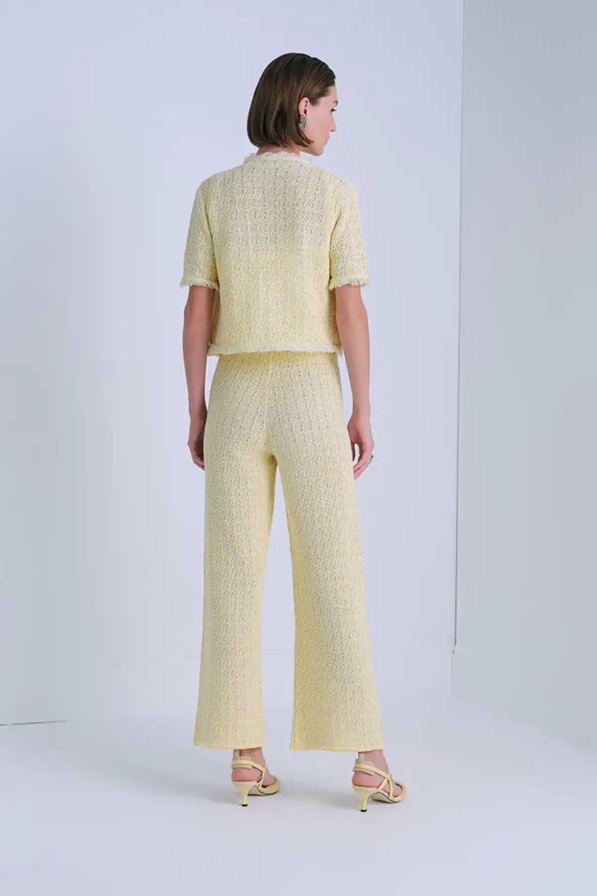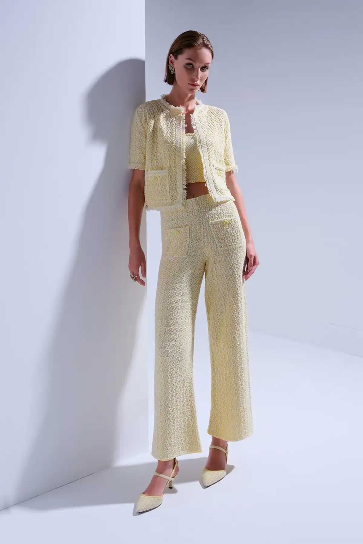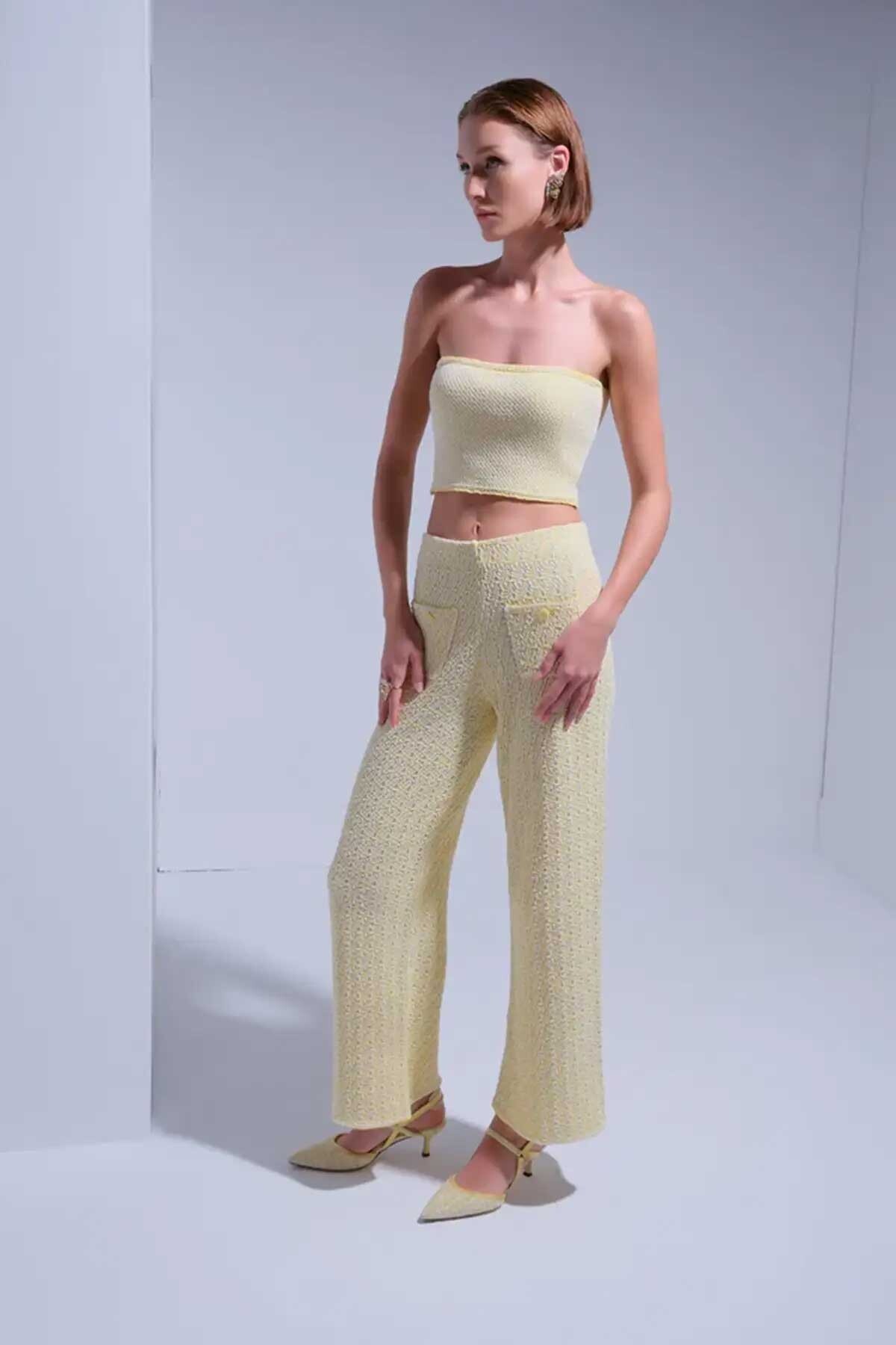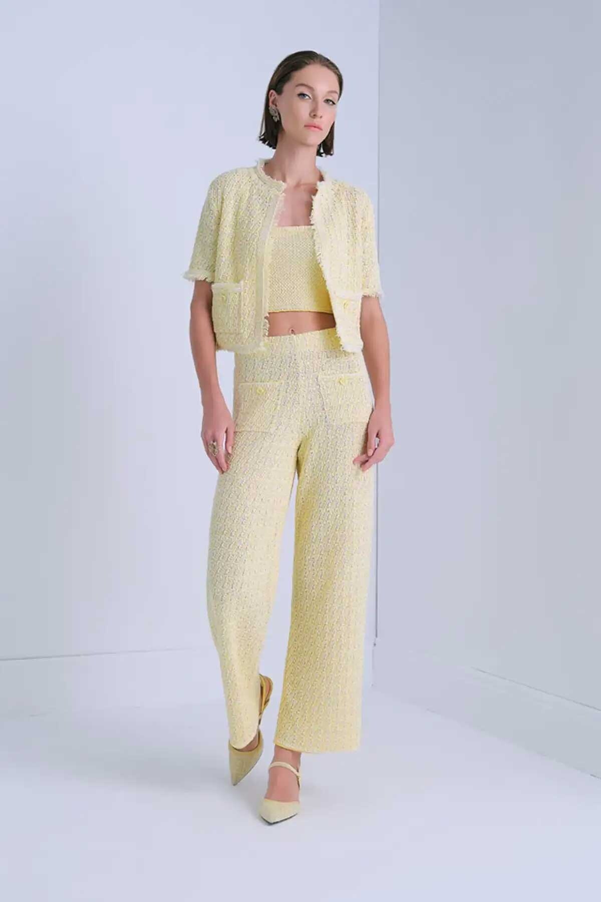 Kadın Süs Cep Detaylı Tüvit Pantolon - Sarı
