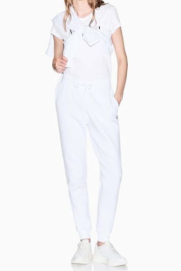 Pamuk ve polyester karışımından oluşan yumuşak kumaşıyla maksimum rahatlık sunan bu beyaz eşofman altı, spor ve günlük kombinleriniz için idealdir. Tam Kalıp kesimi rahat bir silüet yaratırken, bel kısmındaki bağcıklı ve lastikli yapı sayesinde vücuda tam oturur ve kullanım kolaylığı sağlar. Minimal marka logolu detayı sade ve modern bir görünüm sunar. Rahat kalıbı ve lastik paça detayı ile gün boyu konfor sunar.