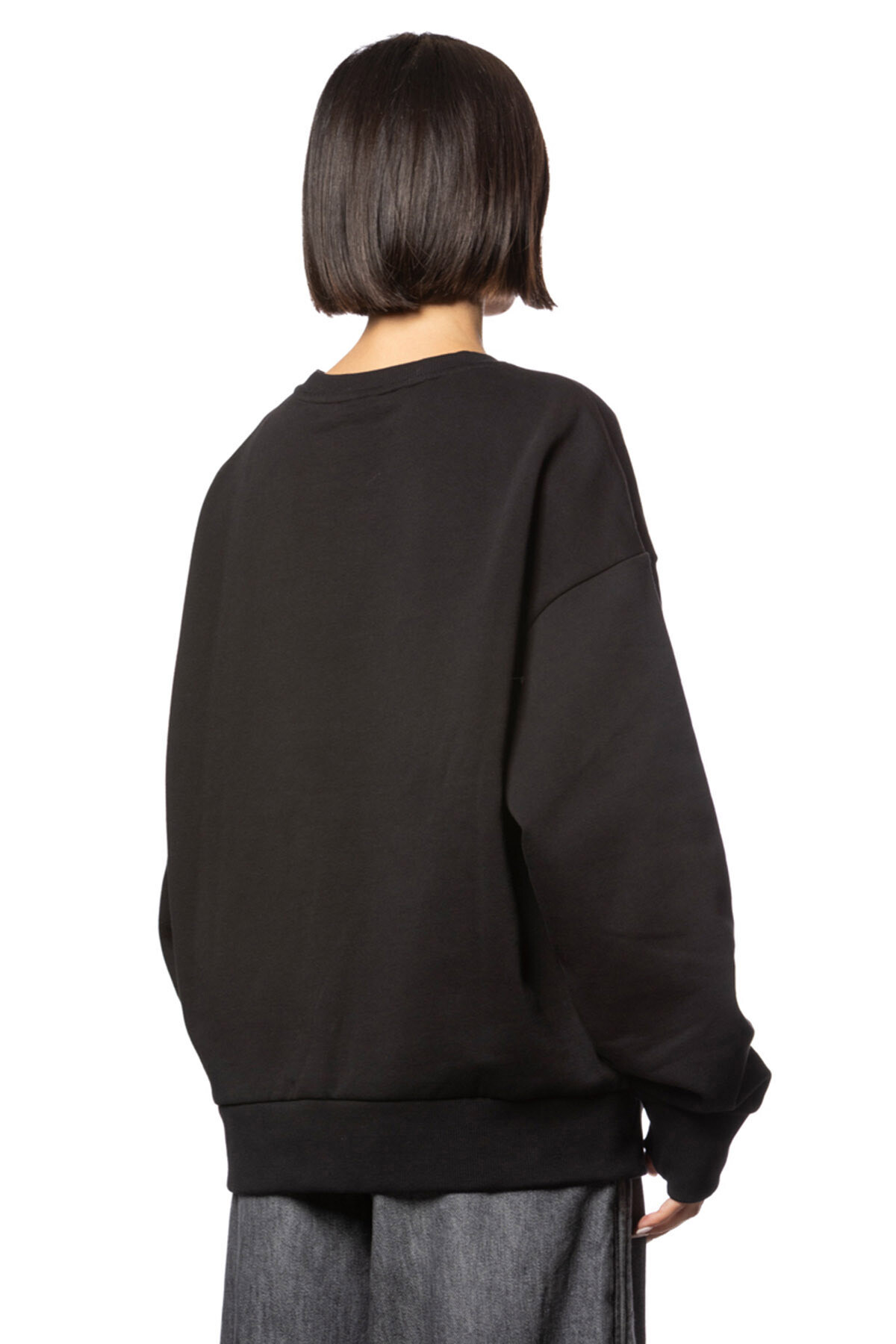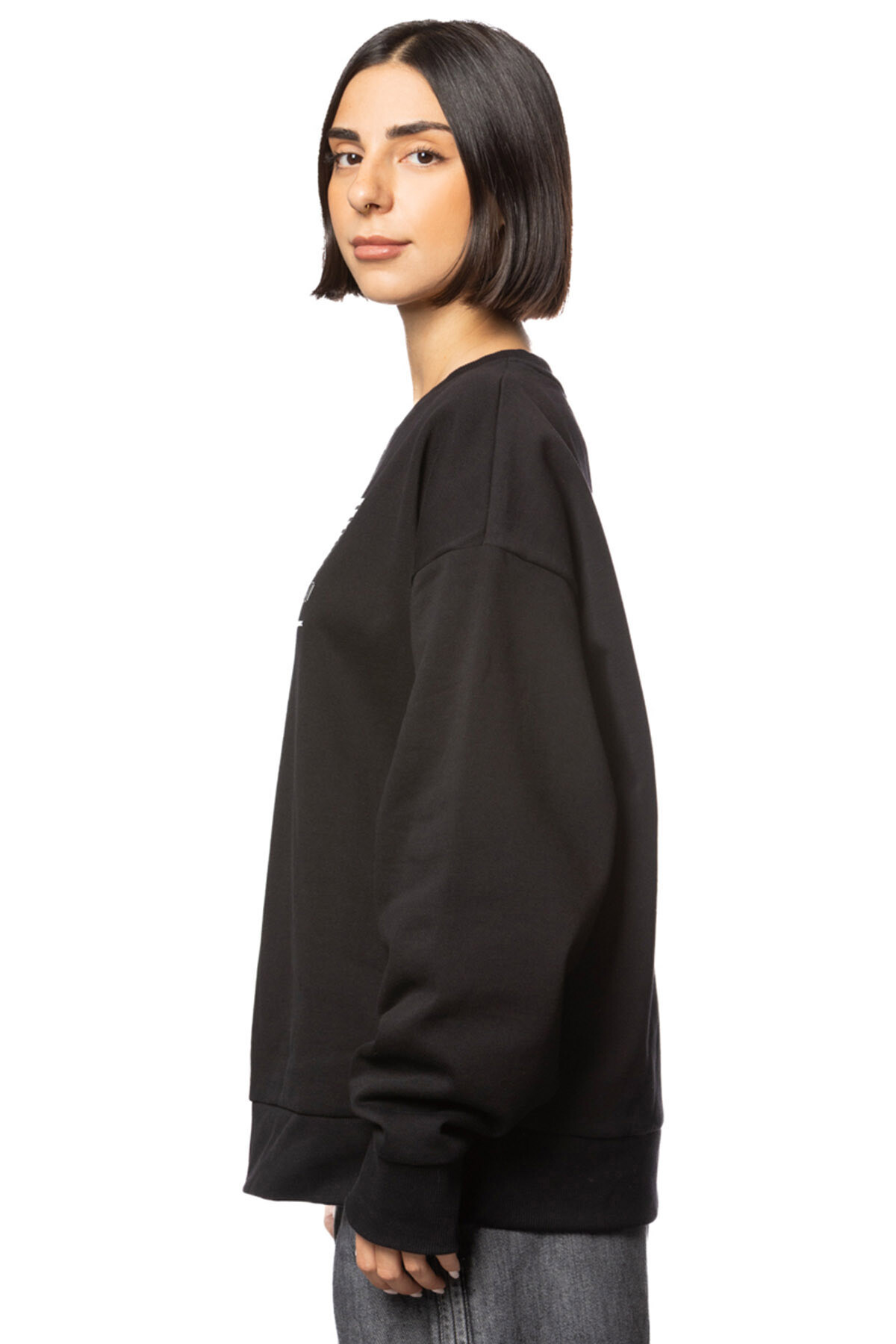 Pamuk ve polyester karışımı kumaşıyla gün boyu yumuşak ve konforlu bir his sunan bu siyah sweatshirt, modern şehir stilinin vazgeçilmez bir parçasıdır. Tam kalıp kesimi ve düşük omuz detaylarıyla rahat bir kullanım sağlarken, göğüs üzerindeki kendinden renkli (tonal) parlak marka logosu tasarıma sofistike bir derinlik katar. Bisiklet yaka tasarımı ve ribanalı manşetleri ile hem spor hem de günlük kombinlerinizde şıklığı yakalamanızı sağlar.