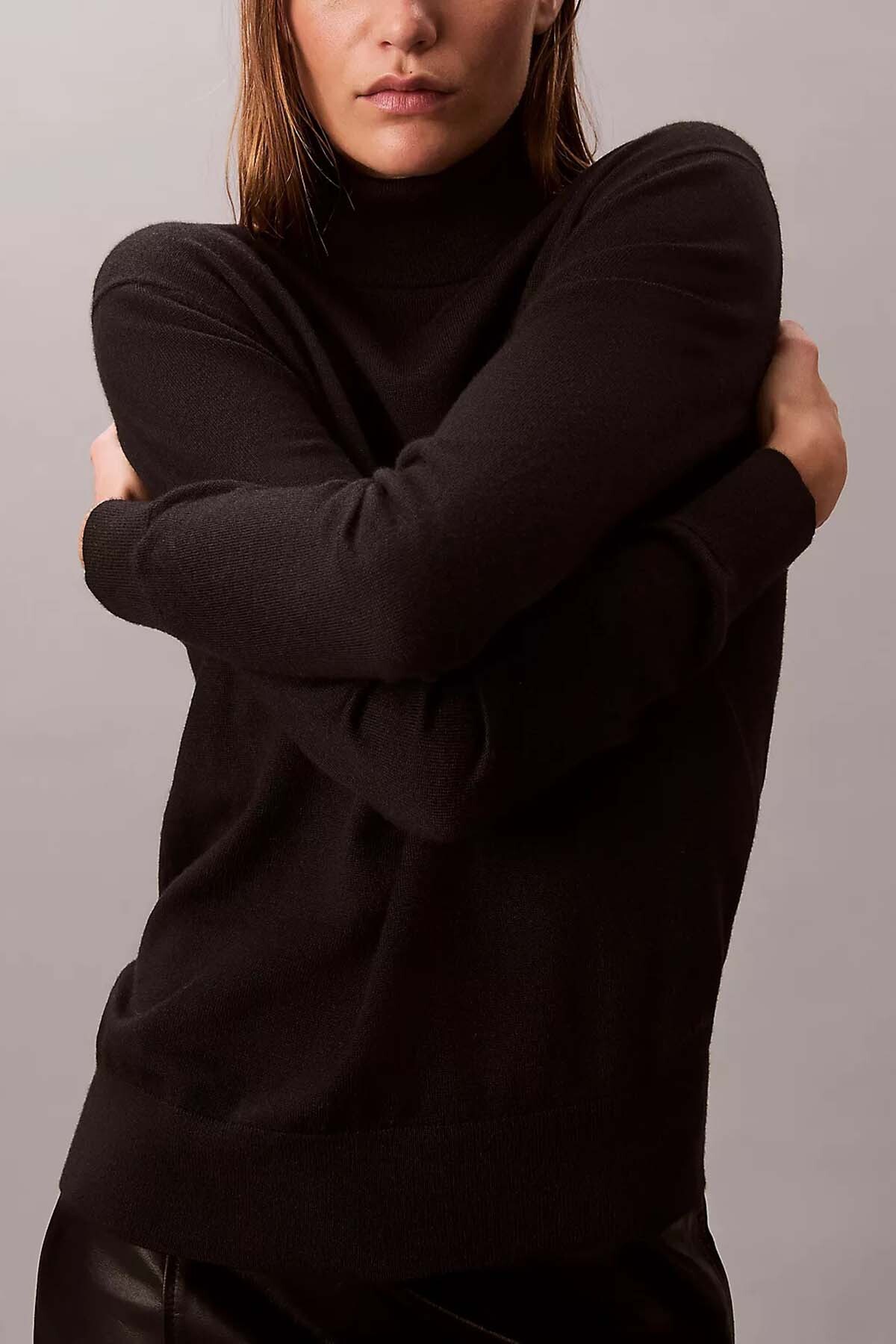 Polyester ve yün karışımı kumaşındaki esneklik sayesinde rahat bir giyim deneyimi sunar. Tam Kalıp kesimiyle vücuda zarifçe otururken, uzun kollu ve boğazlı yaka detayı, kış kombinleriniz için hem zamansız hem de fonksiyonel bir temel oluşturur.