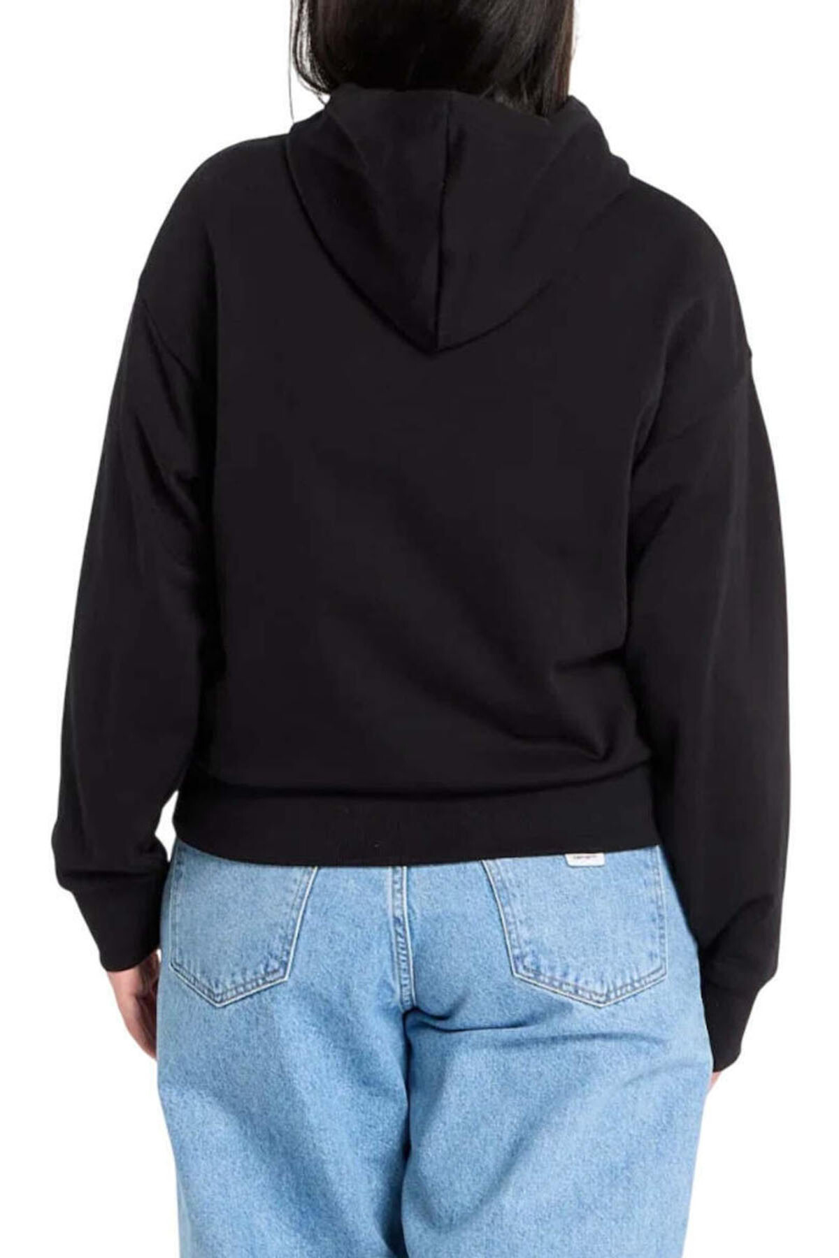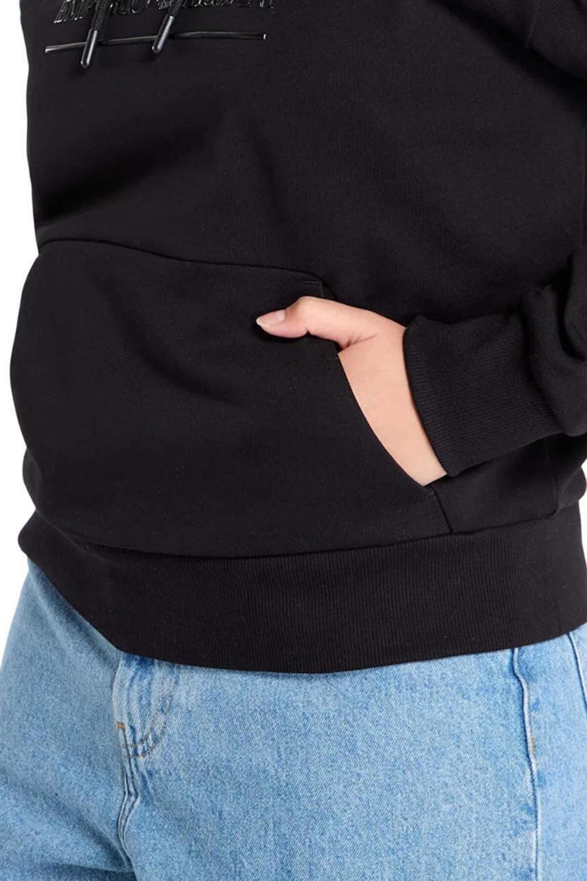 Pamuk ve polyester karışımı kumaşıyla gün boyu yumuşak ve sıcak bir kullanım sunan bu siyah sweatshirt, modern sokak stilini yansıtır. Tam kalıp kesimi vücuda rahatça otururken, göğüs üzerindeki kendinden renkli (tonal) parlak marka logosu tasarıma sofistike ve dikkat çekici bir hava katar. Ayarlanabilir bağcıklı kapüşonu ve kullanışlı kanguru cebi ile hem fonksiyonel hem de şık bir tercihtir.