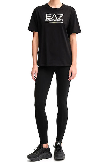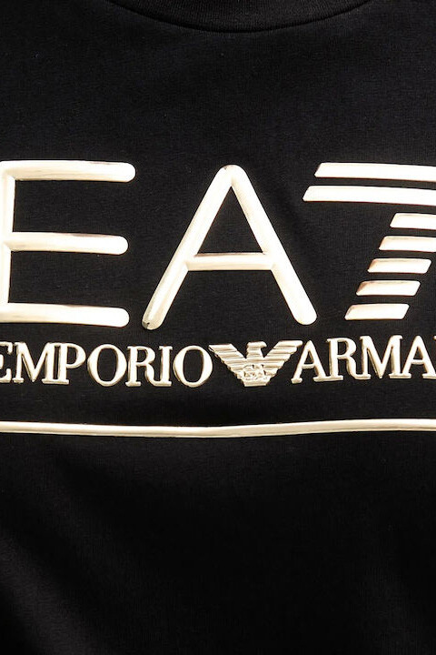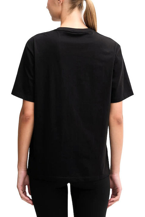 %100 pamuklu doğal dokusuyla cildinize nefes aldıran bu siyah tişört, şıklığı ve konforu bir arada sunar. Ön kısmında yer alan dikkat çekici metalik görünümlü ve büyük boyutlu marka logolu baskı, tasarıma lüks ve modern bir hava katar. Tam kalıp kesimi ve bisiklet yaka detayı ile vücuda rahatça oturur. Hem spor şıklığında hem de günlük kombinlerinizde parıltılı ve iddialı bir stil yaratmak için idealdir.