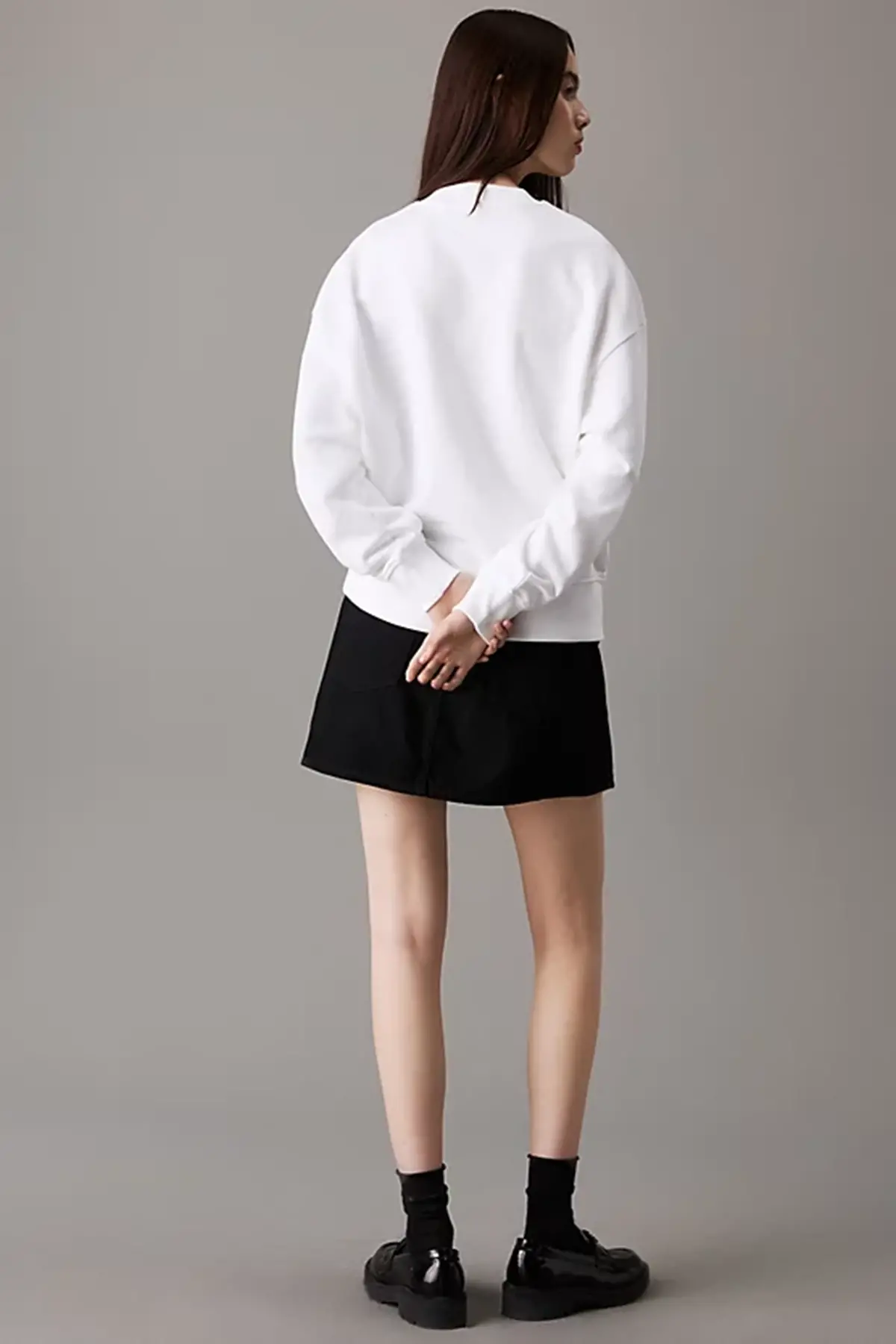 Kadın Textured Monologo Sweatshirt - Beyaz