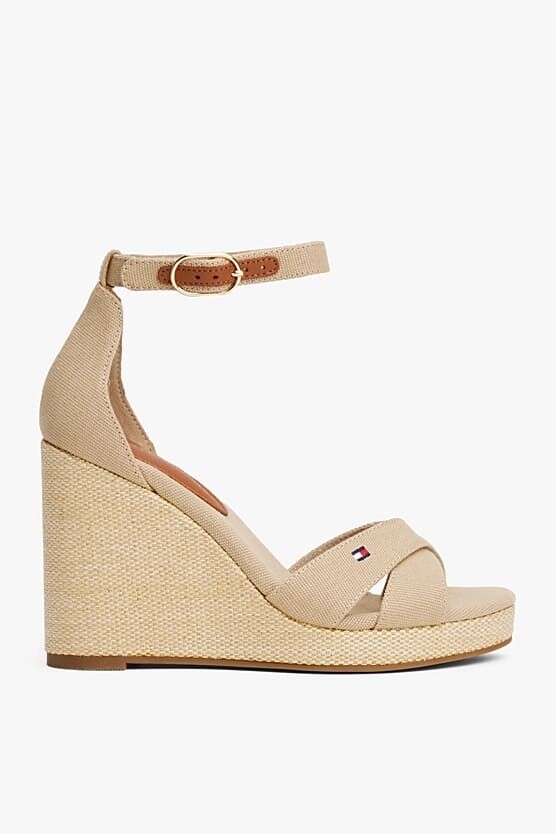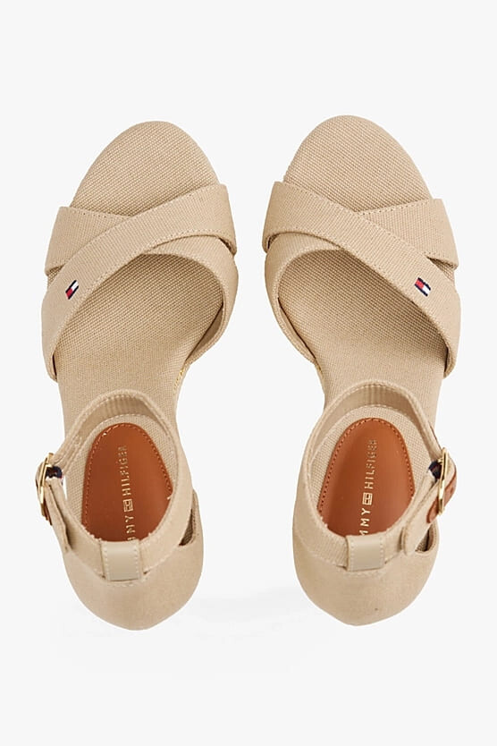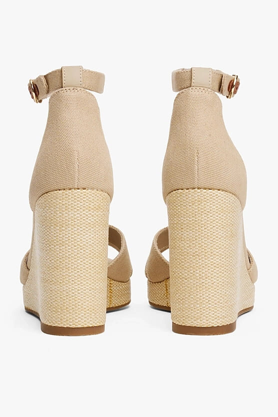 Kadın Th Canvas Espadrille Yüksek Topuk Sandalet - Krem