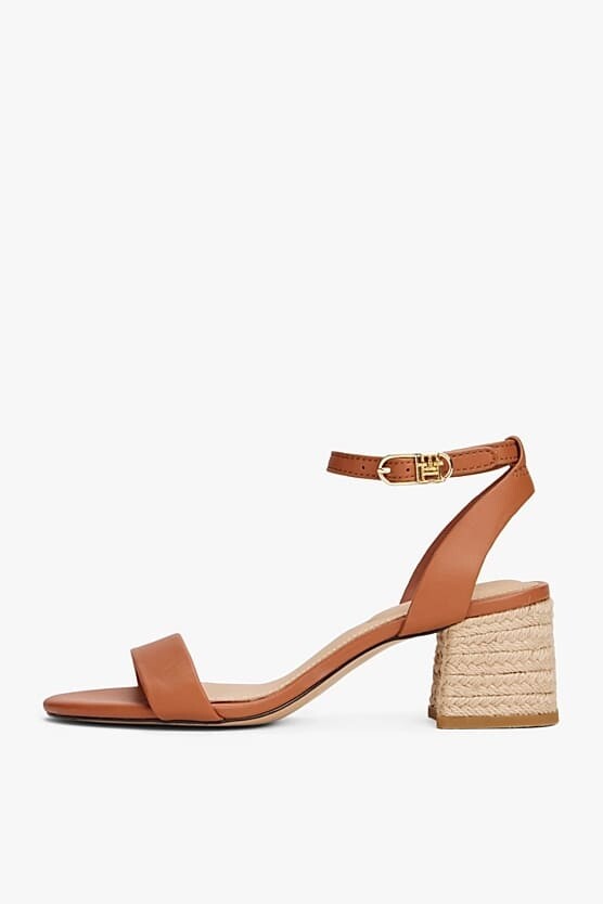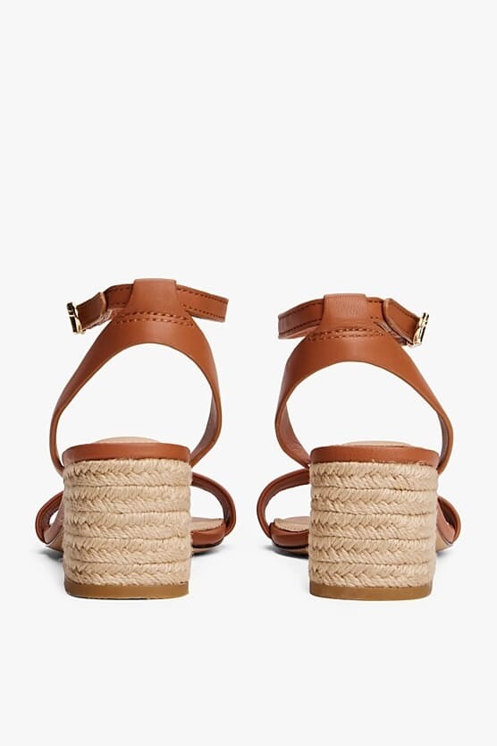 Kadın Th Deri Espadrille Topuklu Sandalet - Kahverengi