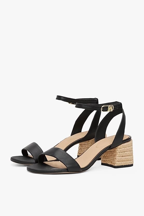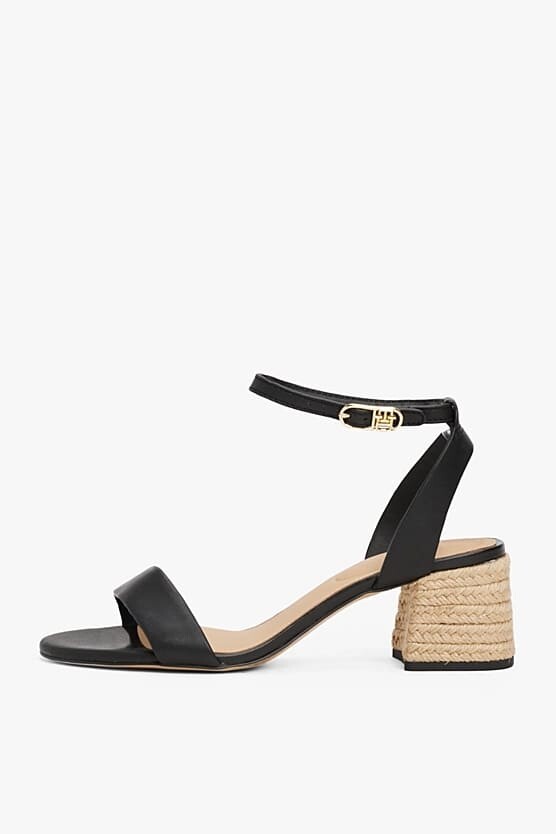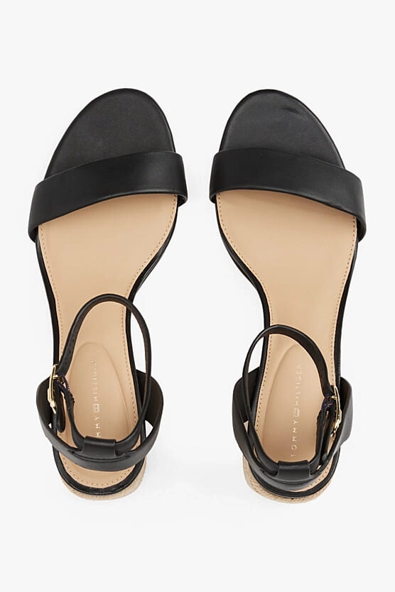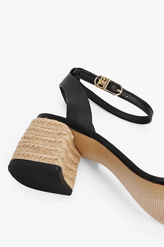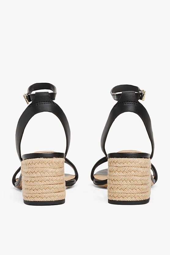 Kadın Th Deri Espadrille Topuklu Sandalet - Siyah