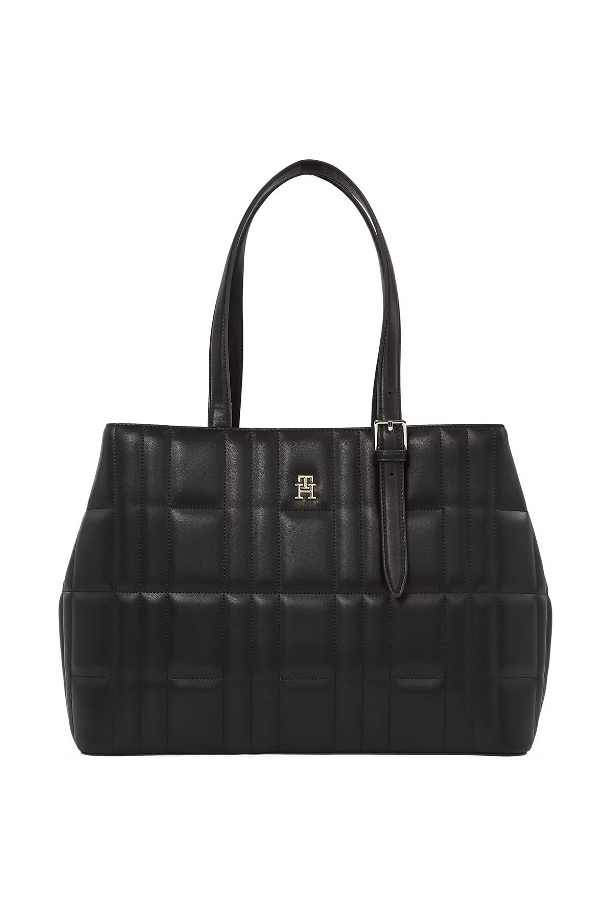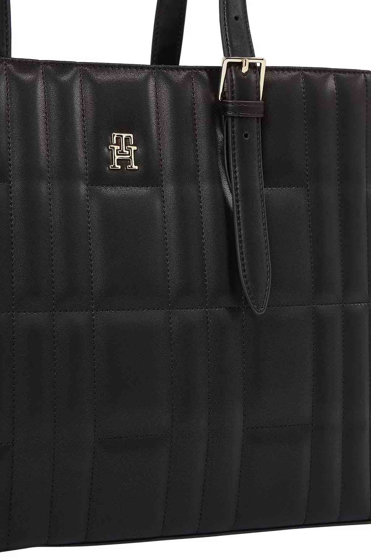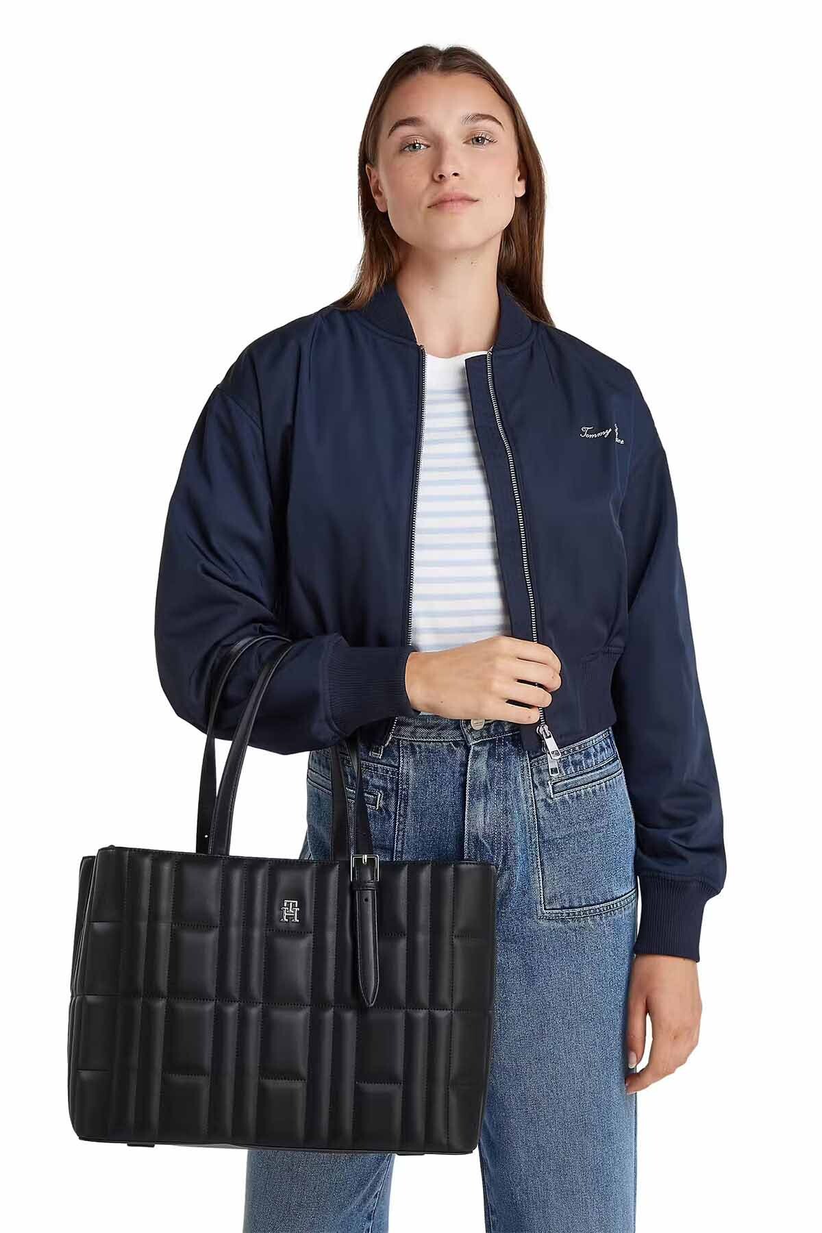 TH Feminine Tote çanta, modern çizgili dikişleri ve şık altın rengi marka logosu ile tarzınıza elegan bir dokunuş sağlar. Geniş iç hacmi ve kullanışlı askı boyuyla, günlük kullanımın yanı sıra ofis veya seyahat için de mükemmel bir seçimdir.