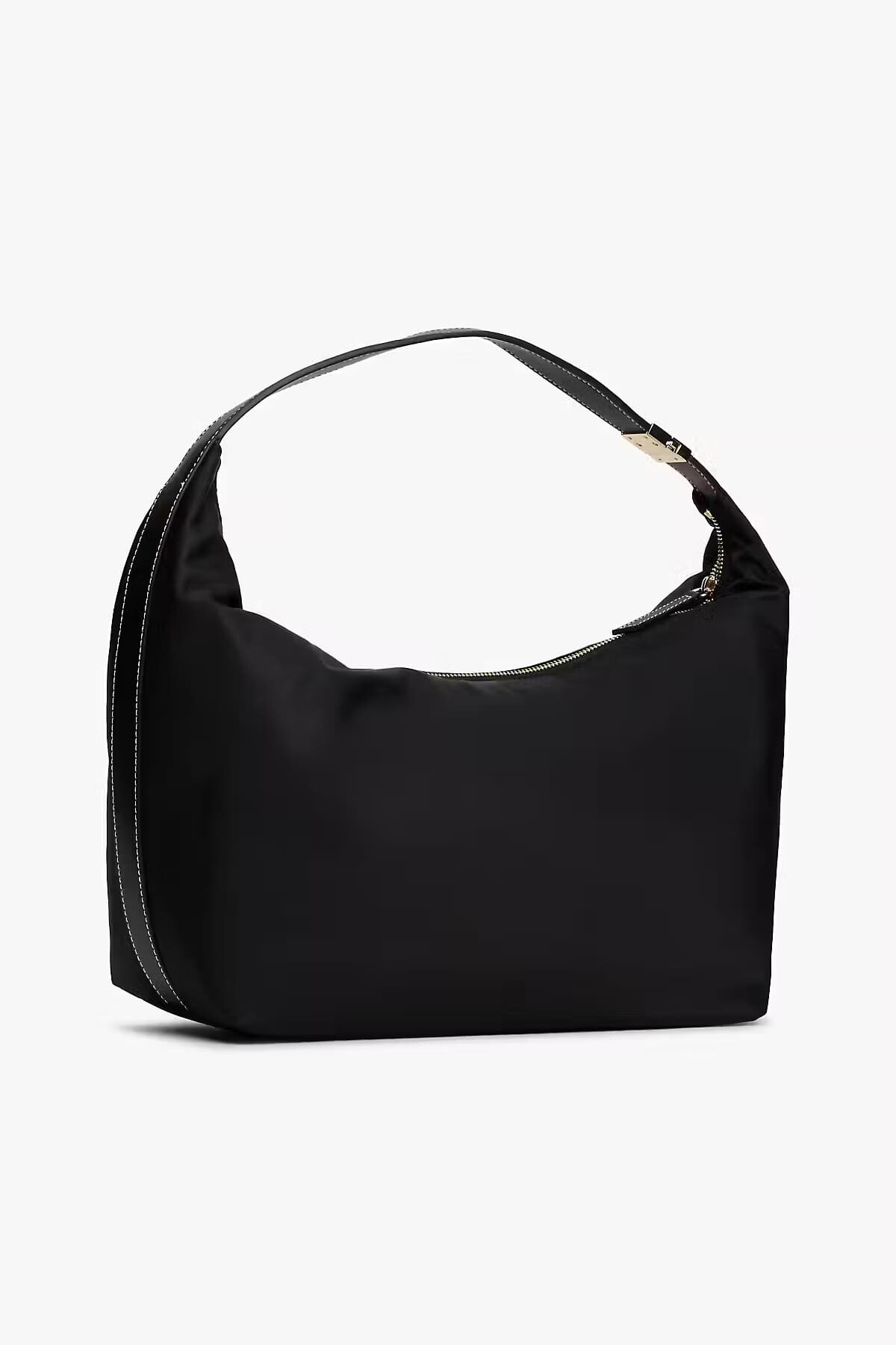 Siyahın zamansız asaleti ve fonksiyonel tasarım anlayışı, bu TH Go Hobo çantada hayat buluyor. %85 oranında geri dönüştürülmüş naylon kullanılarak üretilen model, çevreye duyarlı duruşunun yanı sıra gün boyu konfor sağlayan tüy gibi hafif yapısıyla dikkat çeker. 41 cm'lik genişliği ve vücut kıvrımlarına uyum sağlayan modern "hobo" formu, günlük eşyalarınız için cömert bir saklama alanı sunar. Tasarımın en çarpıcı detayı, omuz askısında yer alan ve boyunu ayarlamanıza imkan tanıyan şık gold metal toka ile askı kenarlarındaki zarif beyaz kontrast dikişlerdir; bu detaylar siyah zeminde sofistike bir hareketlilik yaratır. Ön yüzdeki minimal gold renkli "TH" logosu ve güvenli fermuarlı ana bölmesiyle bu çanta, sportif şıklığı şehir hayatına taşıyor.