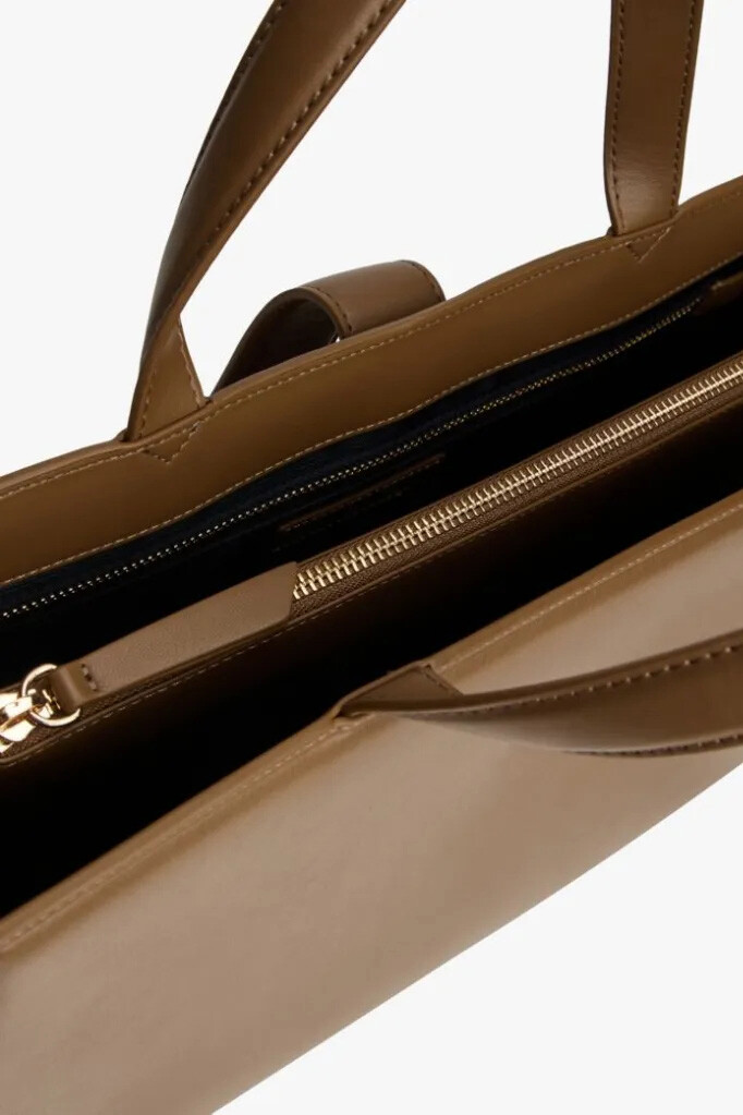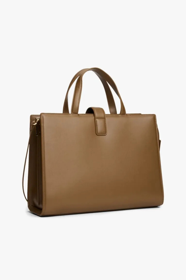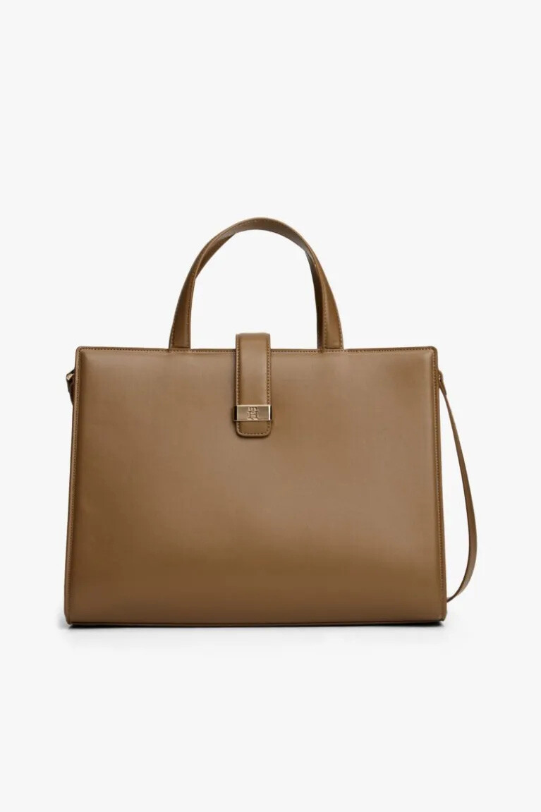 Modern şehir hayatının temposuna uyum sağlayan bu zarif çanta, sofistike duruşu ve işlevsel tasarımıyla stilinizi bir adım öne taşıyor. Pürüzsüz dokusu ve net hatlara sahip kalıbı, ürüne maskülen ve feminen detayların dengeli bir birleşimini kazandırırken, ön kısımdaki gold renkli metal toka detayı şıklığınızı tamamlayan en çarpıcı unsur oluyor. Geniş iç hacmi sayesinde günlük eşyalarınızı düzenli bir şekilde taşıyabilir; dayanıklı kısa saplarıyla elinizde veya ayarlanabilir uzun askısı sayesinde omzunuzda rahatça kullanabilirsiniz. Hem ofis kombinlerinizle hem de hafta sonu şıklığınızla mükemmel uyum sağlayacak zamansız bir parça.