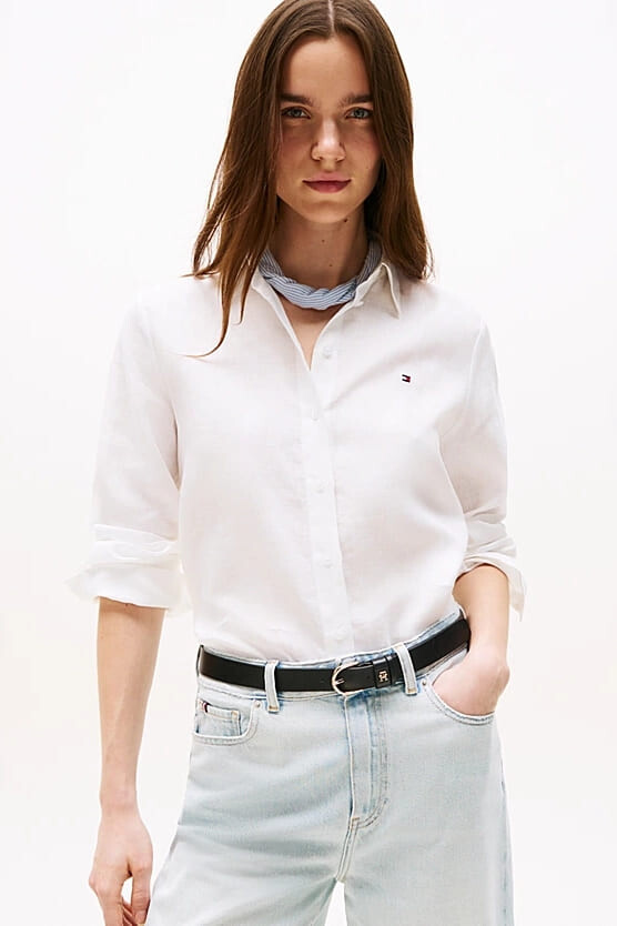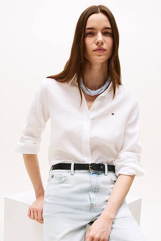 Kadın Th Linen Relaxed Gömlek - Beyaz
