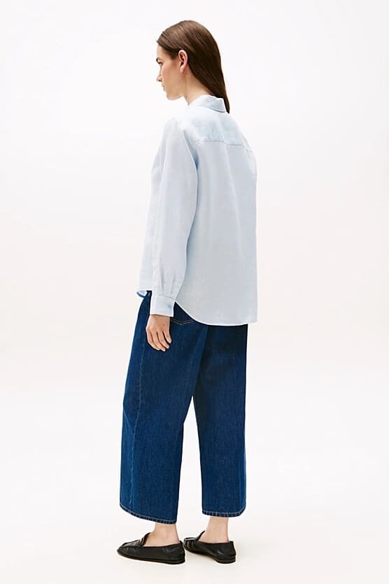 Kadın Th Linen Relaxed Gömlek - Mavi
