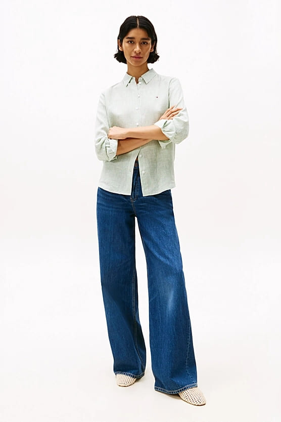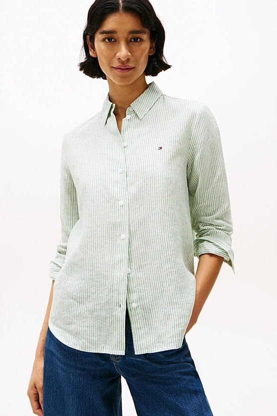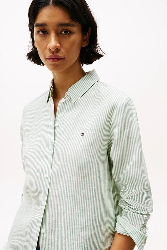 Kadın Th Linen Relaxed Gömlek - Yeşil
