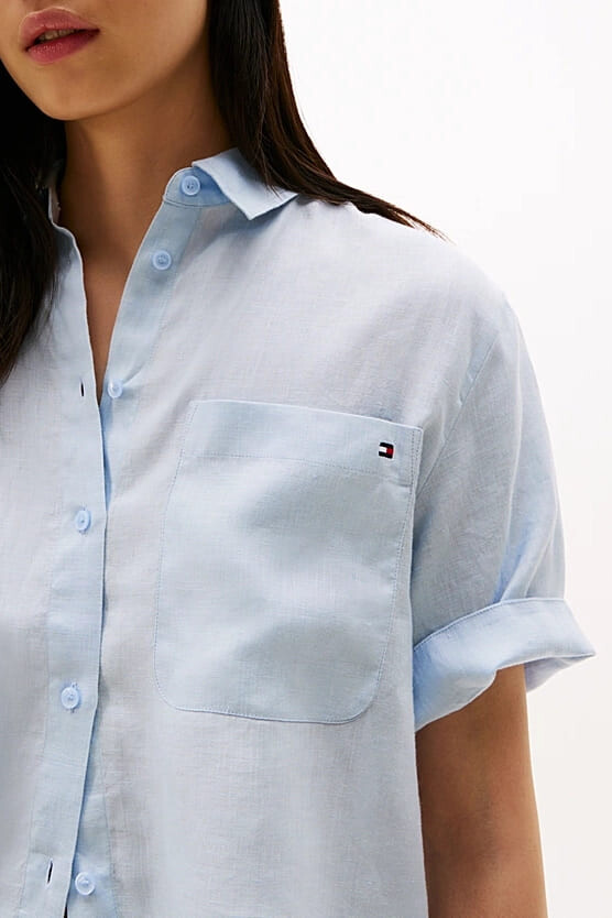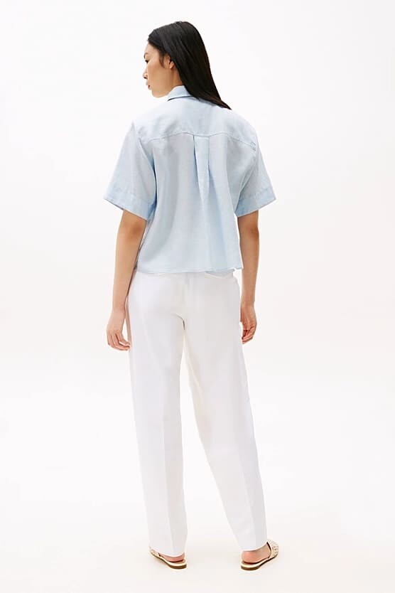 Kadın Th Relaxed Keten Gömlek - Açık Mavi