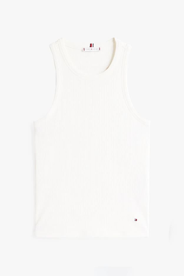 Kadın Th Ribbed Kolsuz T-Shirt - Ekru