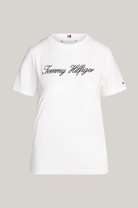 Kadın Th Script Logo Regular T-Shirt - Ekru