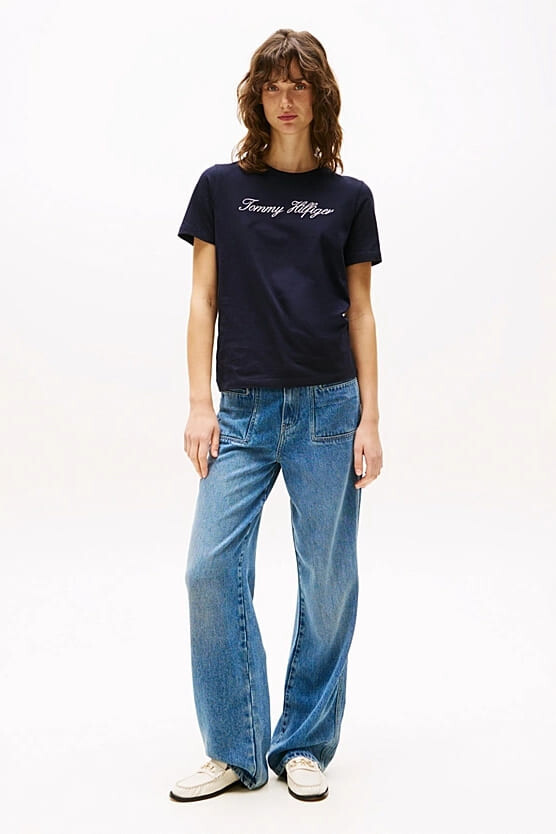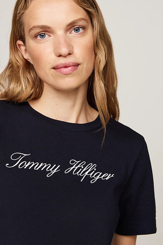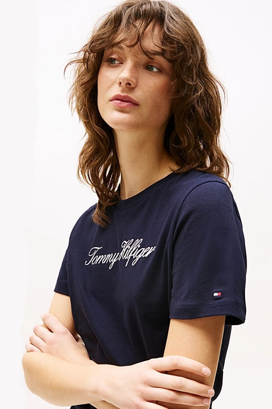 Kadın Th Script Logo Regular T-Shirt - Lacivert