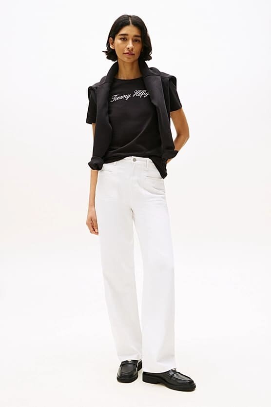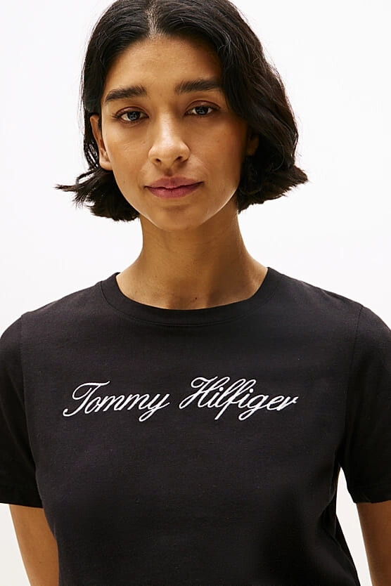 Kadın Th Script Logo Regular T-Shirt - Siyah