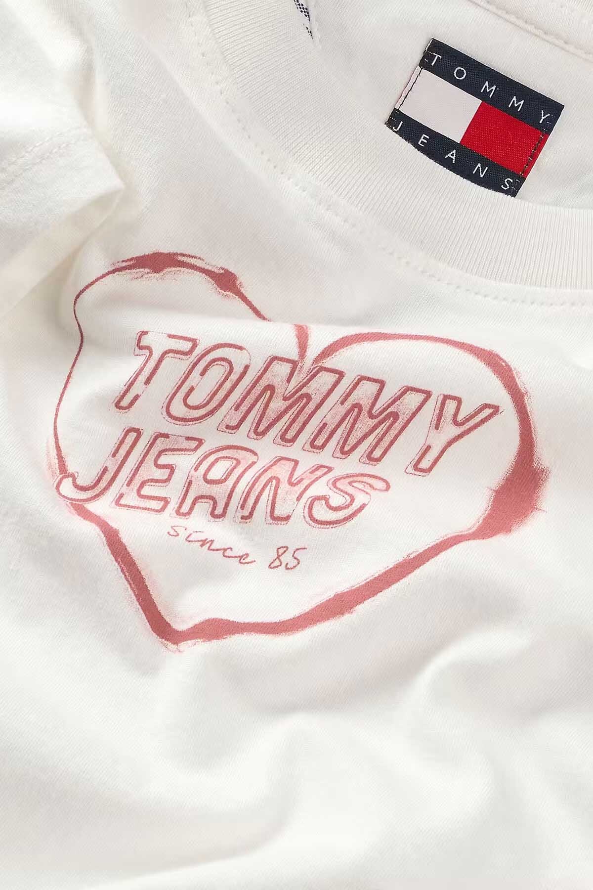 Tommy Hilfiger’ın ikonik “Tommy Jeans Since 85” kalp baskısını taşıyan bu kadın slim fit tişört, basic parçalarınıza sportif bir dokunuş katıyor. İnce, yumuşak pamuk kumaştan üretilen tişört; dar kesimi, kısa kollu tasarımı ve yuvarlak yaka detayıyla günlük kullanıma ideal. Minimal Tommy Hilfiger bayrak aplikesi, sol kola incelikle işlenmiş. Jean’larla mükemmel uyum sağlayan bu parça, gardırobunuzun favori tişörtü olacak.