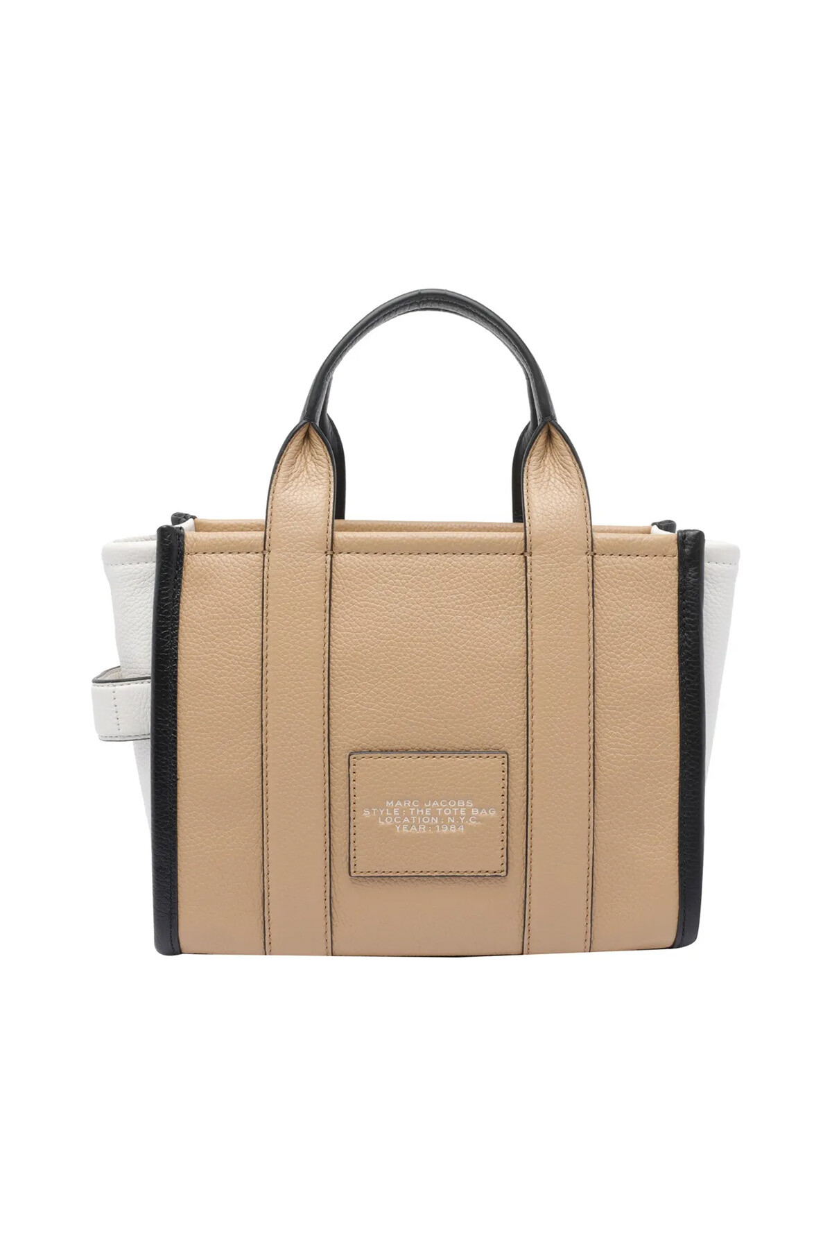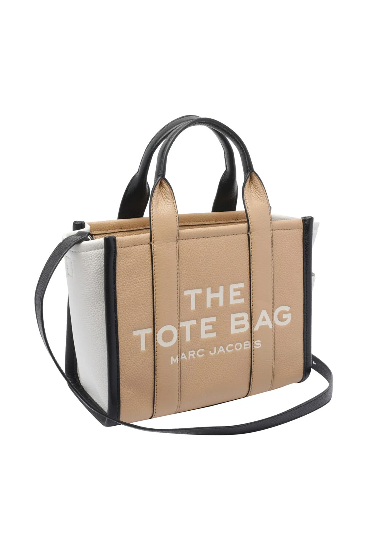Marc Jacobs'ın ikonik "The Small Tote Bag" modeli, bu versiyonunda şık renk bloklu (colorblock) tasarımıyla öne çıkıyor. Bej, siyah ve beyaz renklerin kontrast uyumunu sunan bu çanta, ön yüzündeki büyük "THE TOTE BAG MARC JACOBS" baskısıyla anında tanınır bir görünüm sergiler. Hem çift el kulpu ile elde hem de çıkarılabilir uzun askısı sayesinde omuzda veya çapraz olarak kullanılabilir. Günlük stilinize modern ve iddialı bir dokunuş katmak için idealdir.