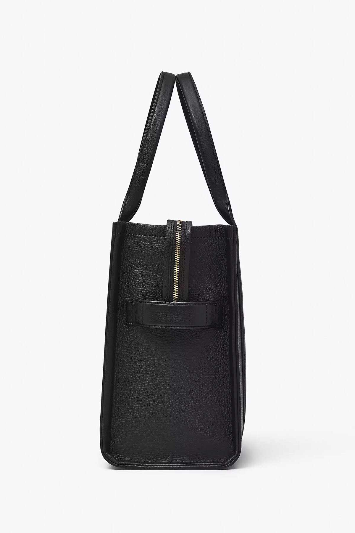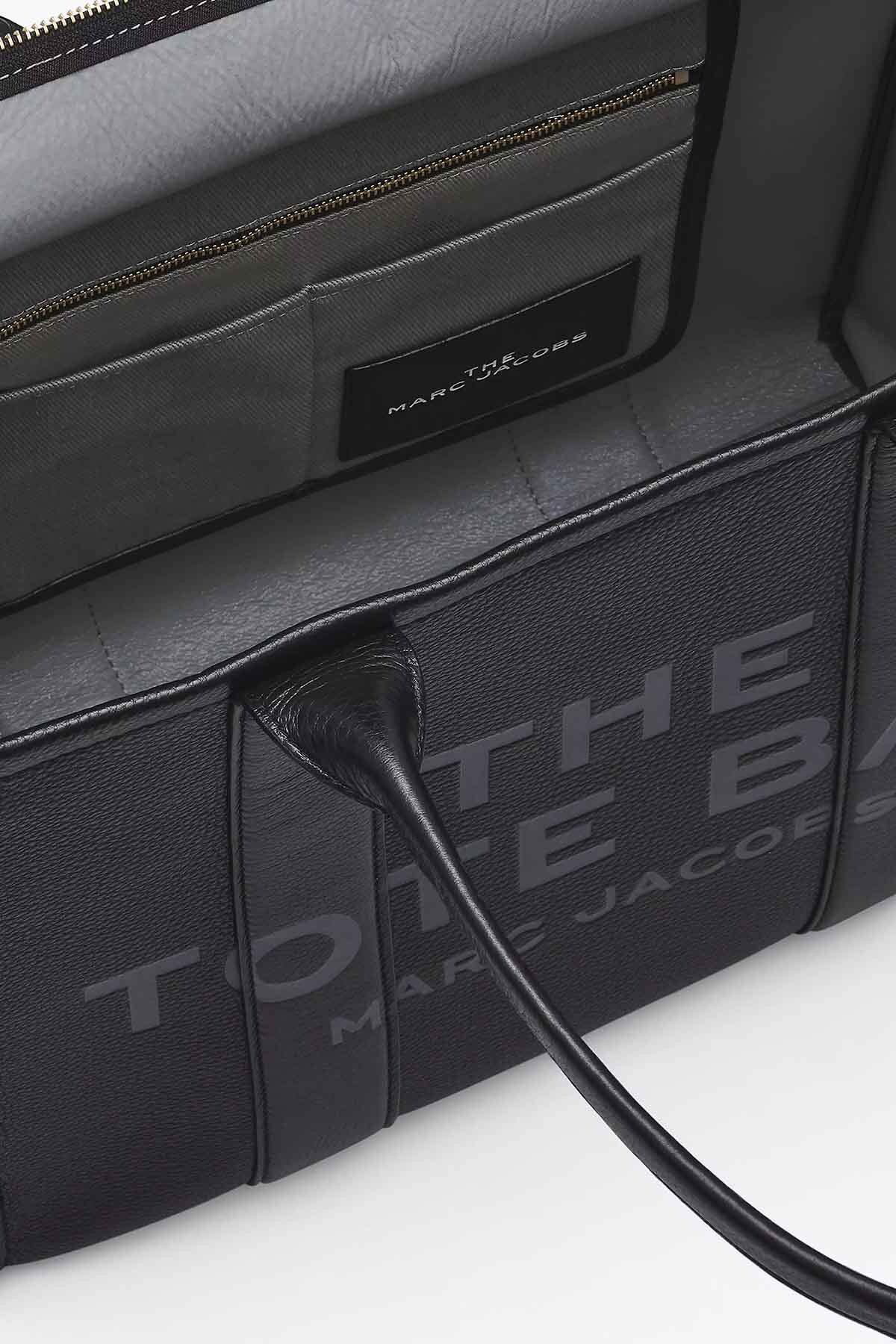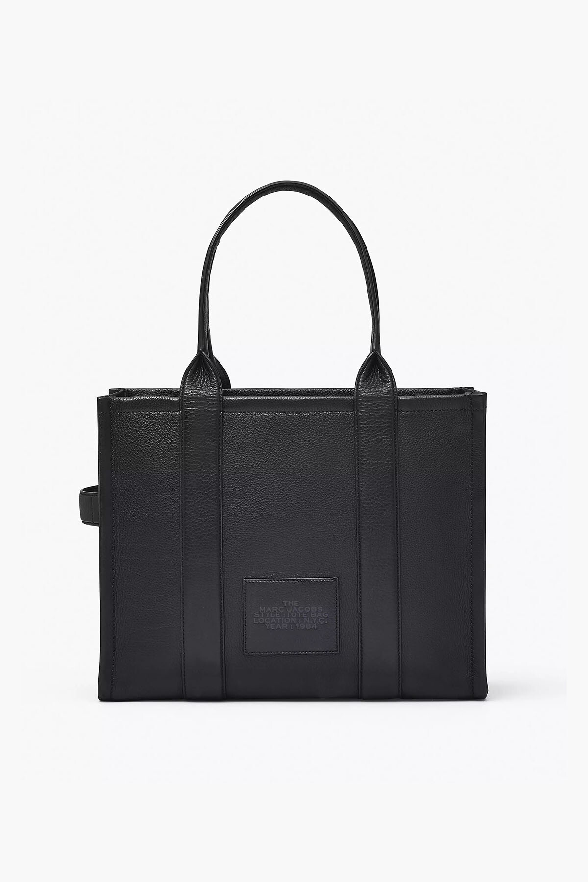 Marc Jacobs'ın ikonik The Leather Large Tote Bag modeli, geniş iç hacmi ve şık tasarımıyla öne çıkıyor. Siyah renkli bu çanta, ön yüzündeki kabartmalı "THE TOTE BAG MARC JACOBS" logosu ile markanın imzasını taşır. Üstten fermuarlı kapaması güvenli bir kullanım sunarken, iç kısmındaki fermuarlı, sürgülü cepler ve kart yuvası eşyalarınızı düzenlemeniz için bolca alan sağlar. Hem günlük kullanım hem de kısa seyahatler (gecelik konaklama, hafta sonu) için ideal olan bu çanta, omuzda veya elde rahatça taşınabilir.