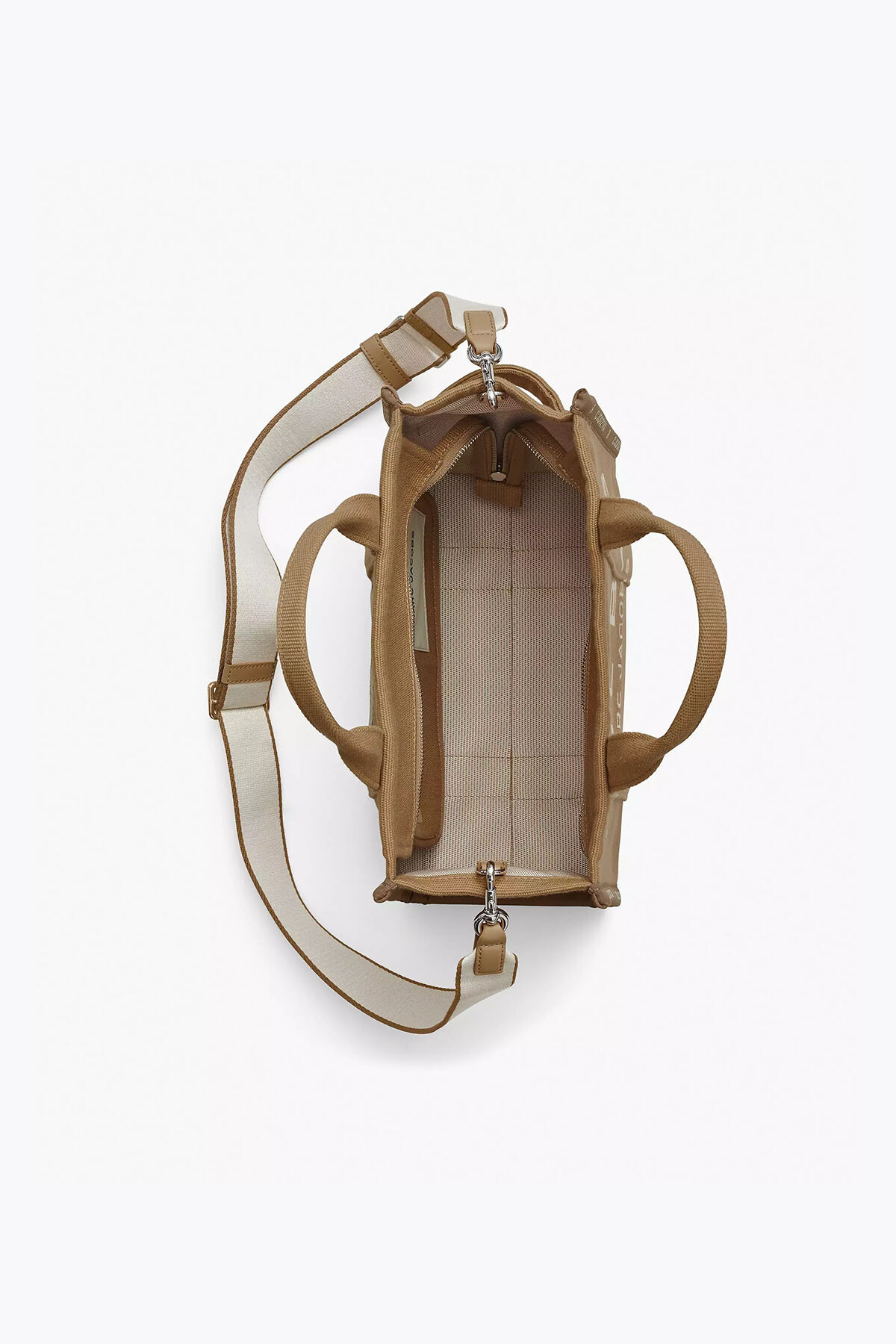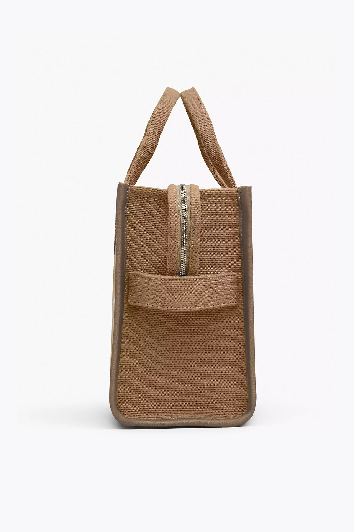 Marc Jacobs'ın ikonik "The Tote Bag" modeli, dayanıklı pamuk ve polyester karışımlı kanvas kumaşı ile öne çıkıyor. Kahverengi zemin üzerine beyaz "THE TOTE BAG MARC JACOBS" baskısı, çantaya anında tanınır bir kimlik kazandırır. Bu çanta, 12 cm'lik el askılarıyla elde veya çıkarılabilir/ayarlanabilir kontrast renkli (beyaz/kahverengi) dokuma askısıyla omuzda ya da çapraz olarak çok yönlü bir kullanım sunar. Üstten fermuarlı kapaması, eşyalarınız için güvenli bir saklama alanı sağlar.