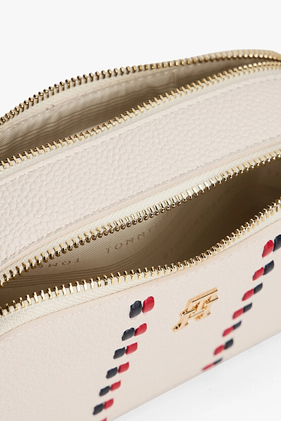 Soft krem renginin zarafetini taşıyan bu Timeless kamera çantası, kompakt tasarımıyla günlük stilinize modern bir dokunuş katıyor. Pütürlü yüzeyi, ön kısımdaki ikonik renkli örgü dikiş görünümlü detayları ve gold metal logo ile hareketlendirilerek sofistike bir görünüm sunuyor. Fermuarlı ana bölmesi, telefon ve cüzdan gibi temel eşyalarınızı güvenle taşımanız için ideal bir alan sağlarken, ayarlanabilir uzun askısı sayesinde ister omuzda ister çapraz olarak konforla kullanılabilir. Hem spor hem de şık kombinlerinizi tamamlayacak zamansız bir aksesuar.