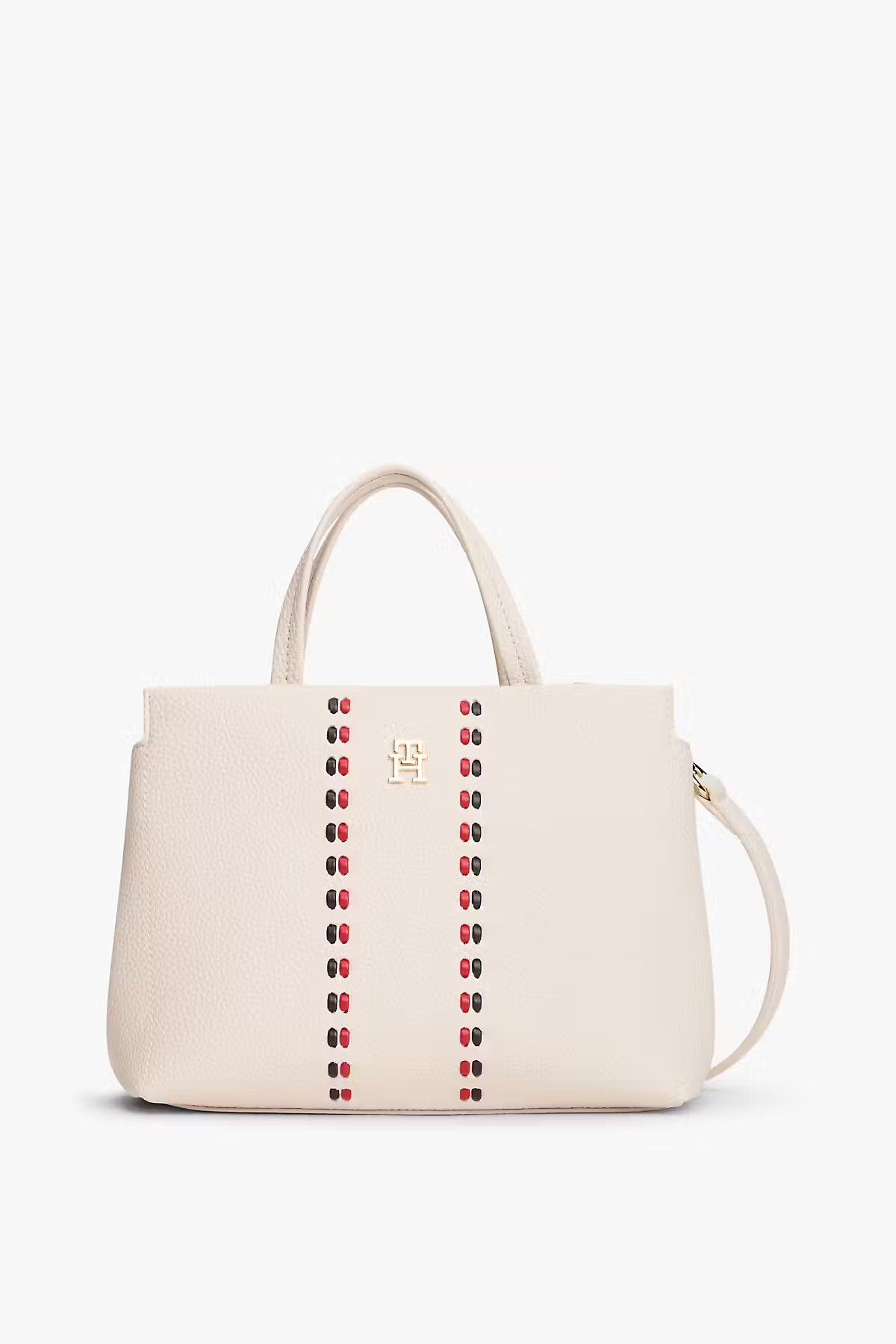 Soft krem tonunun zarafetiyle tasarlanan bu mini satchel çanta, klasik silüeti modern detaylarla buluşturarak zamansız bir şıklık sunuyor. Pütürlü dokusu tasarıma zengin bir görünüm kazandırırken, ön yüzdeki ikonik renkli dikiş detayları ve gold metal logo, sadeliğe dinamik bir hareket katıyor. Kompakt yapısına rağmen geniş iç hacmi günlük ihtiyaçlarınız için ideal bir kullanım alanı sağlar. Hem zarif el tutma sapları hem de takıp çıkarılabilen uzun askısı sayesinde ister elinizde ister omzunuzda taşıyarak stilinizi özgürce yansıtabilirsiniz.