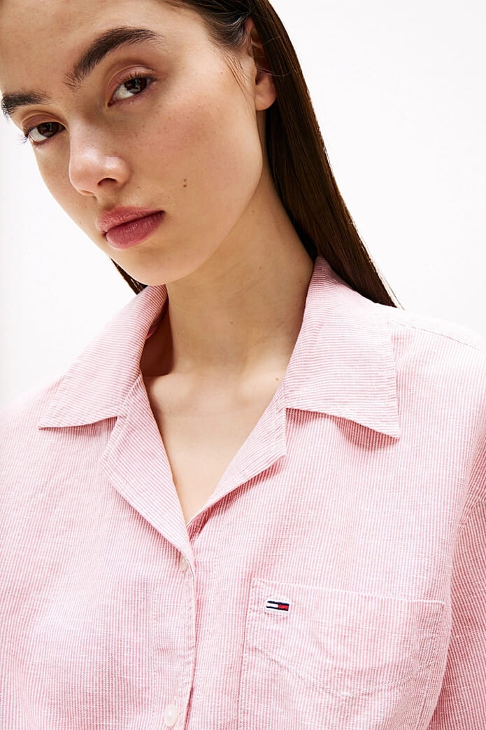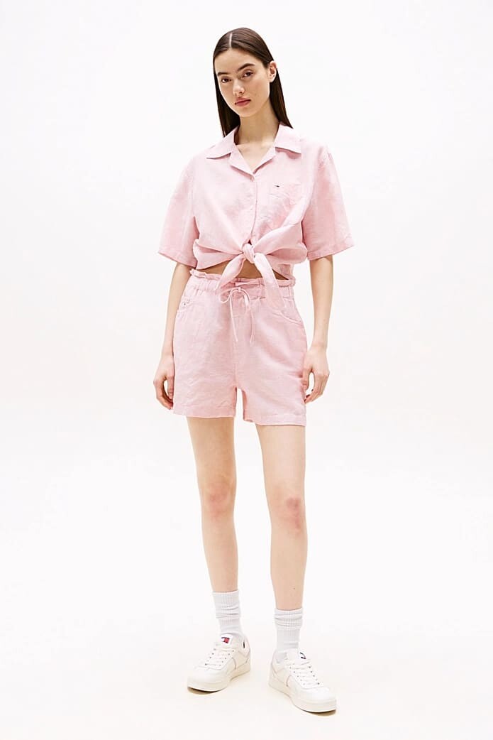 Kadın Tjw Crop Linen Gömlek - Pembe