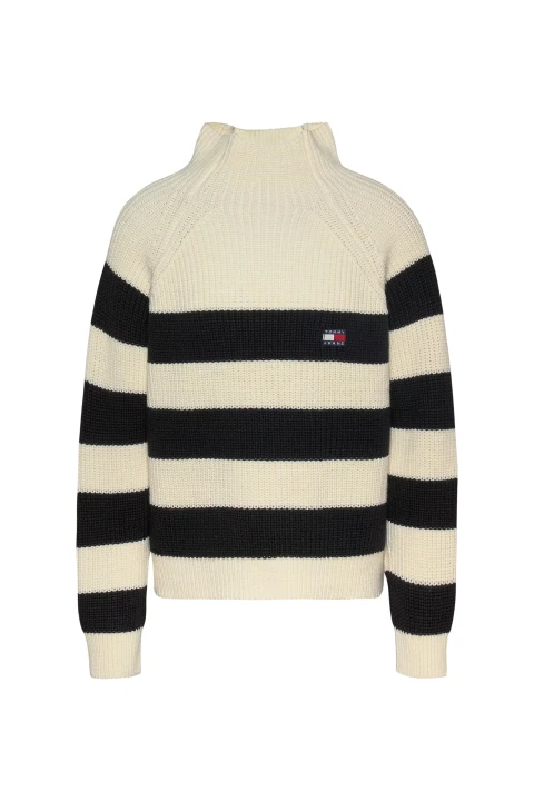 Kadın Tjw Strıpe Mocknck Badge Kazak-Beyaz