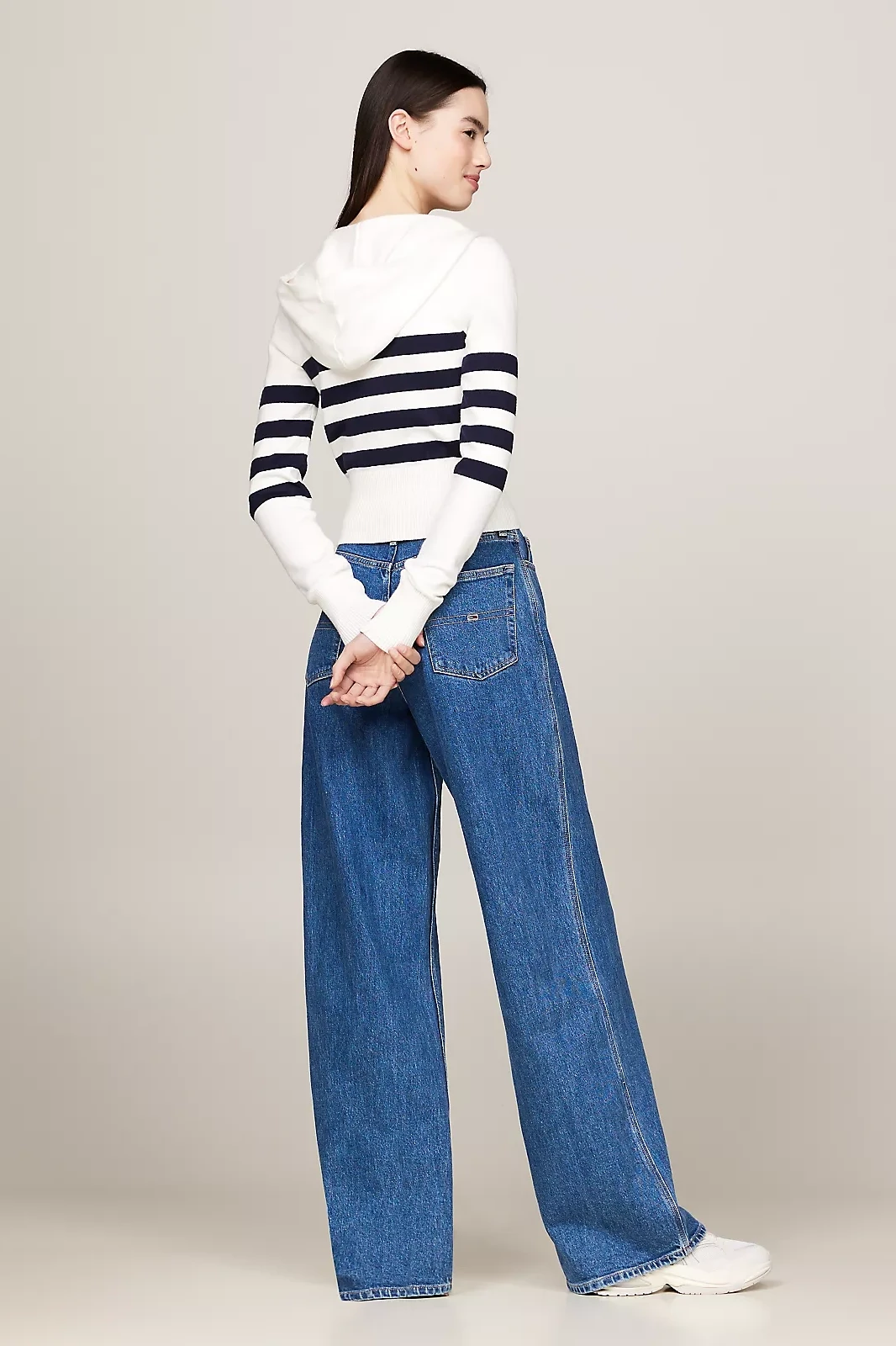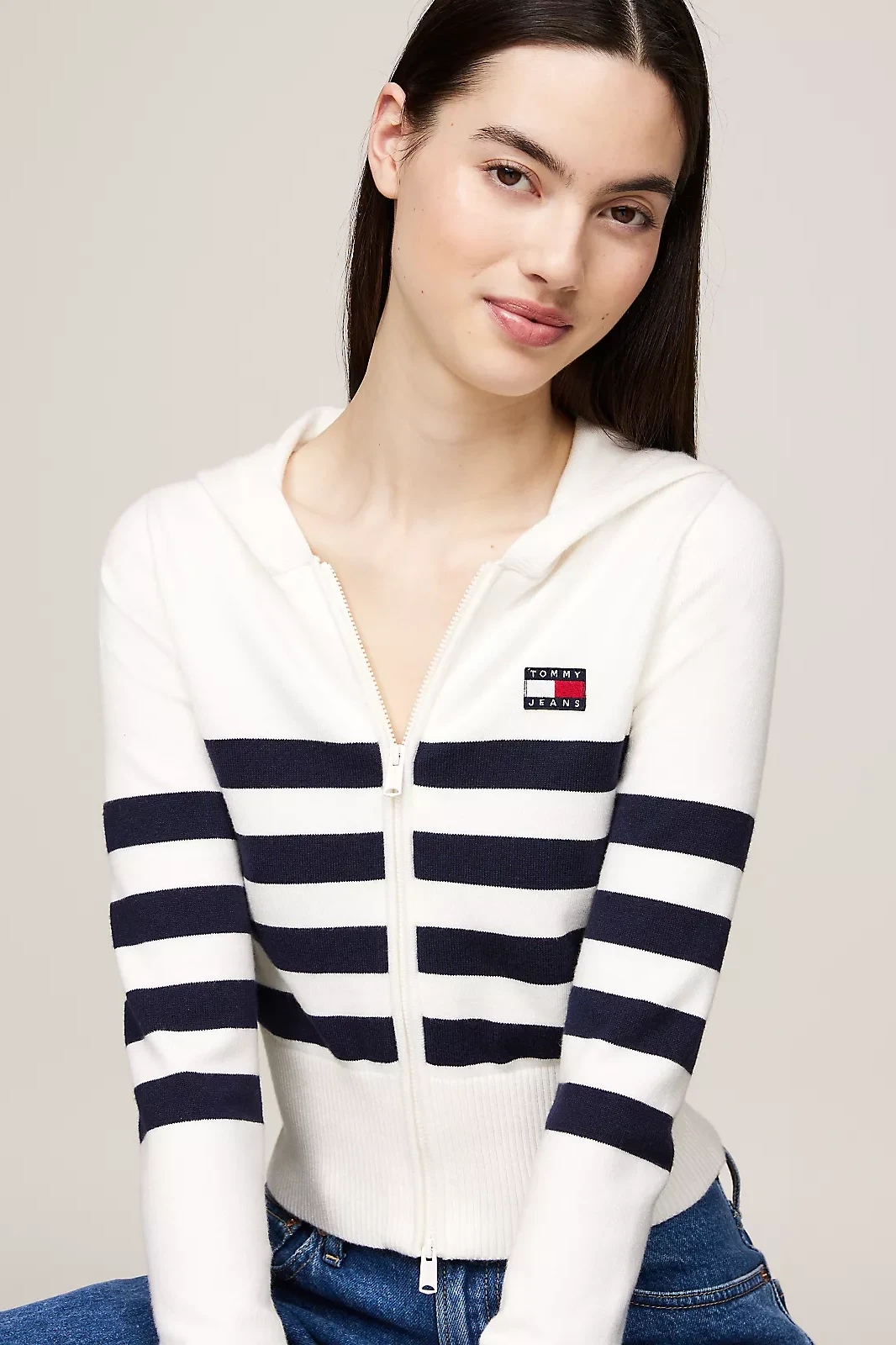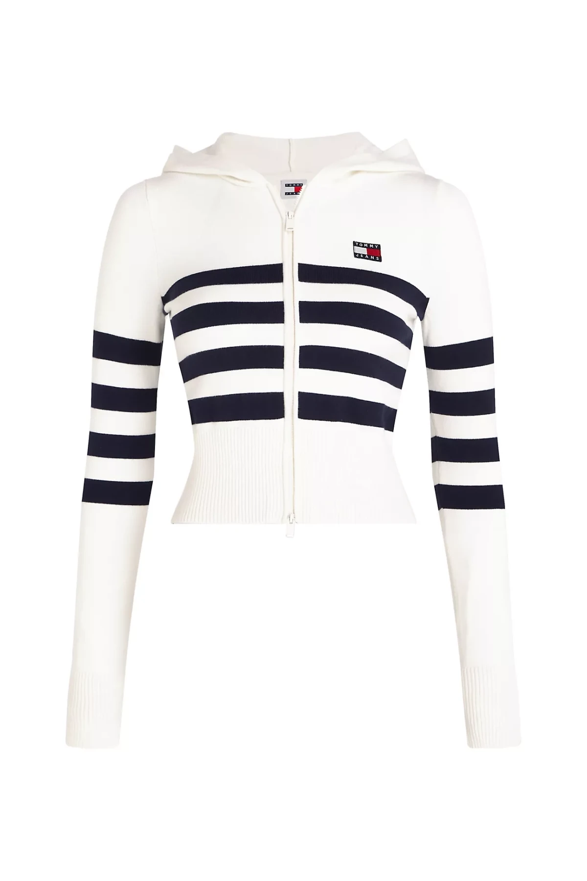 Kadın Tjw Strıpe Zıp Thru Badge Hood Triko Hırka-Beyaz