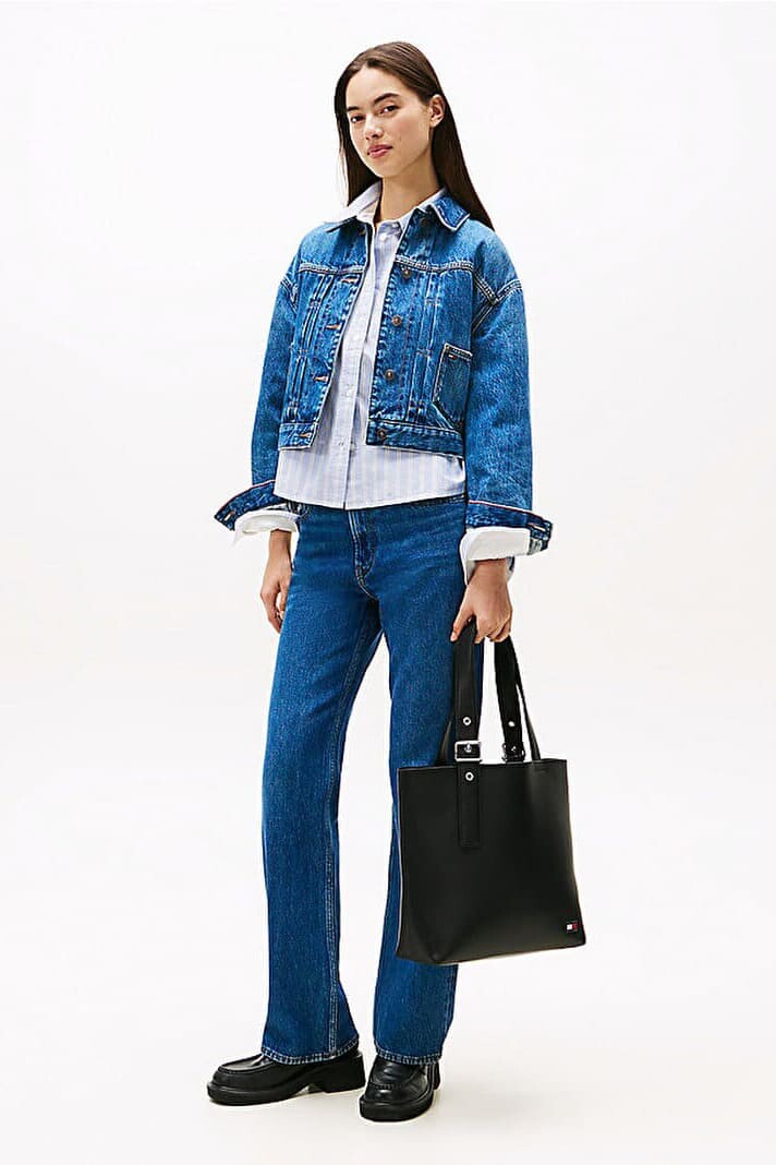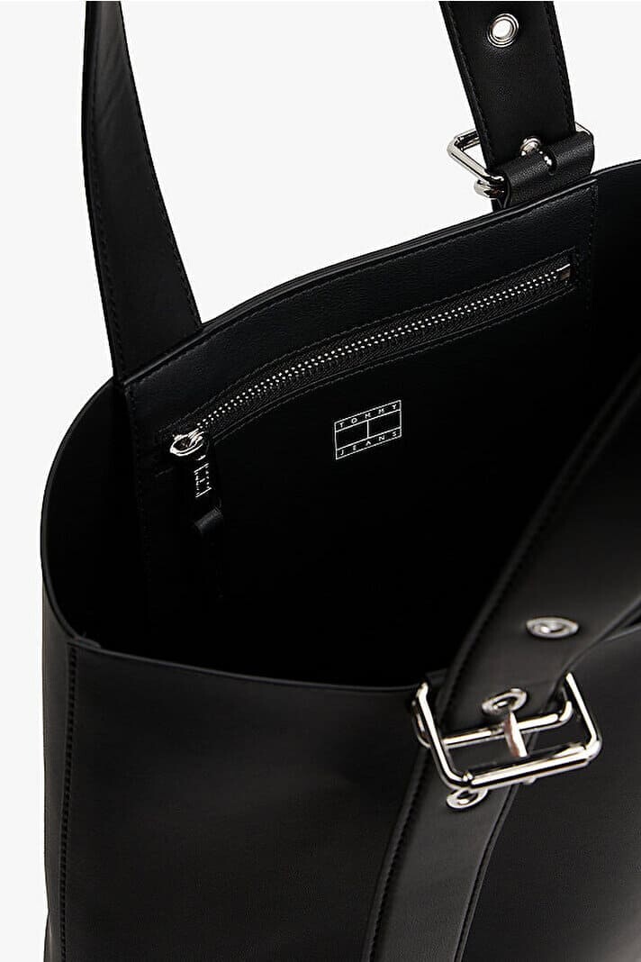 Minimalist tasarımı özgün bir detayla birleştiren bu modern tote çanta, günlük stilinize sofistike bir dokunuş katıyor. Pürüzsüz poliüretan malzemeden üretilen çanta, şık ve yapısal bir duruşa sahiptir. Klasik dikey silüeti, omuz askılarından birinde yer alan toka detayıyla hareket kazanarak tasarıma modern bir karakter katar. Geniş iç hacmi tüm günlük eşyalarınız için pratik bir kullanım sunarken, alt köşesindeki küçük dokuma amblem çantanın kimliğini tamamlar.