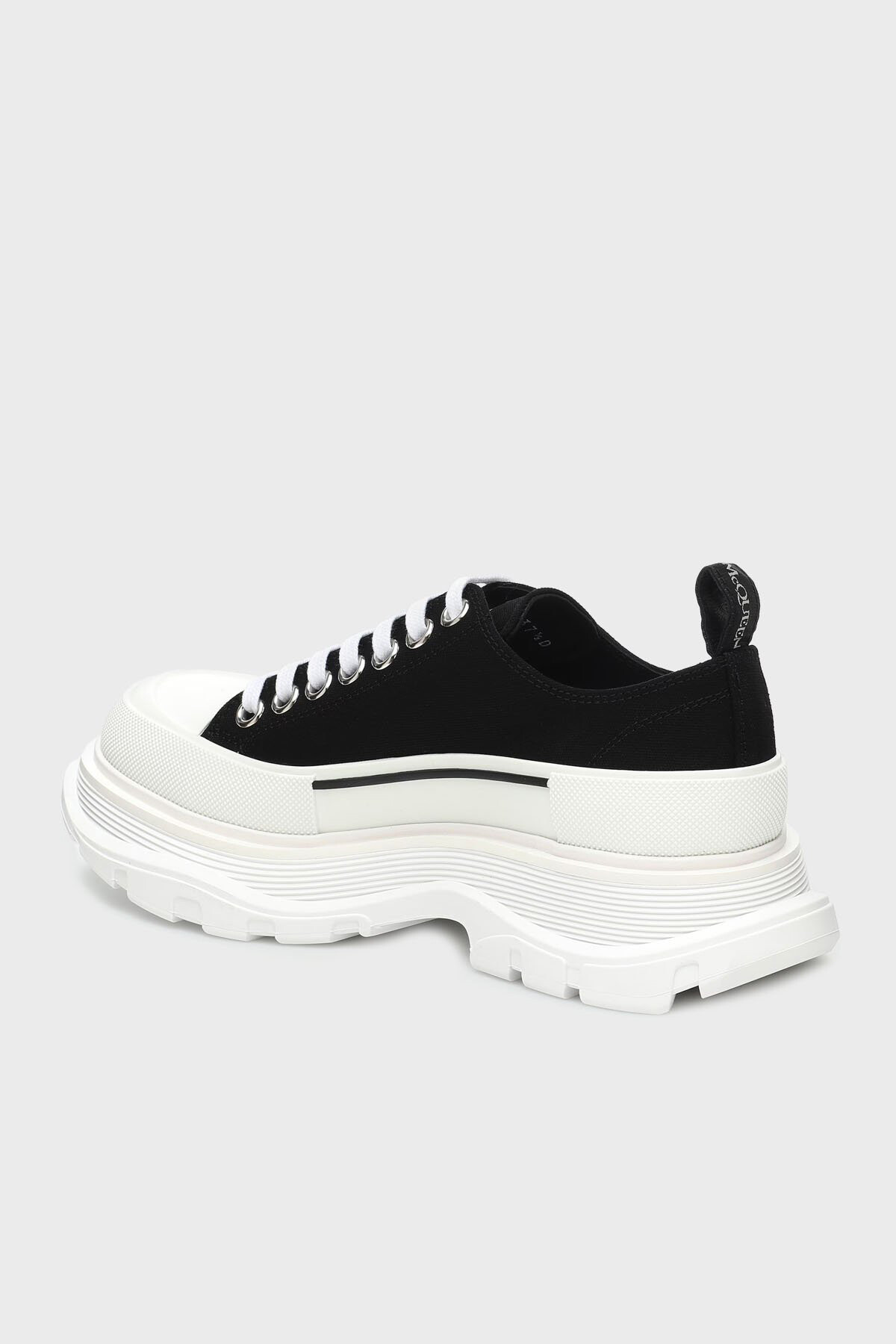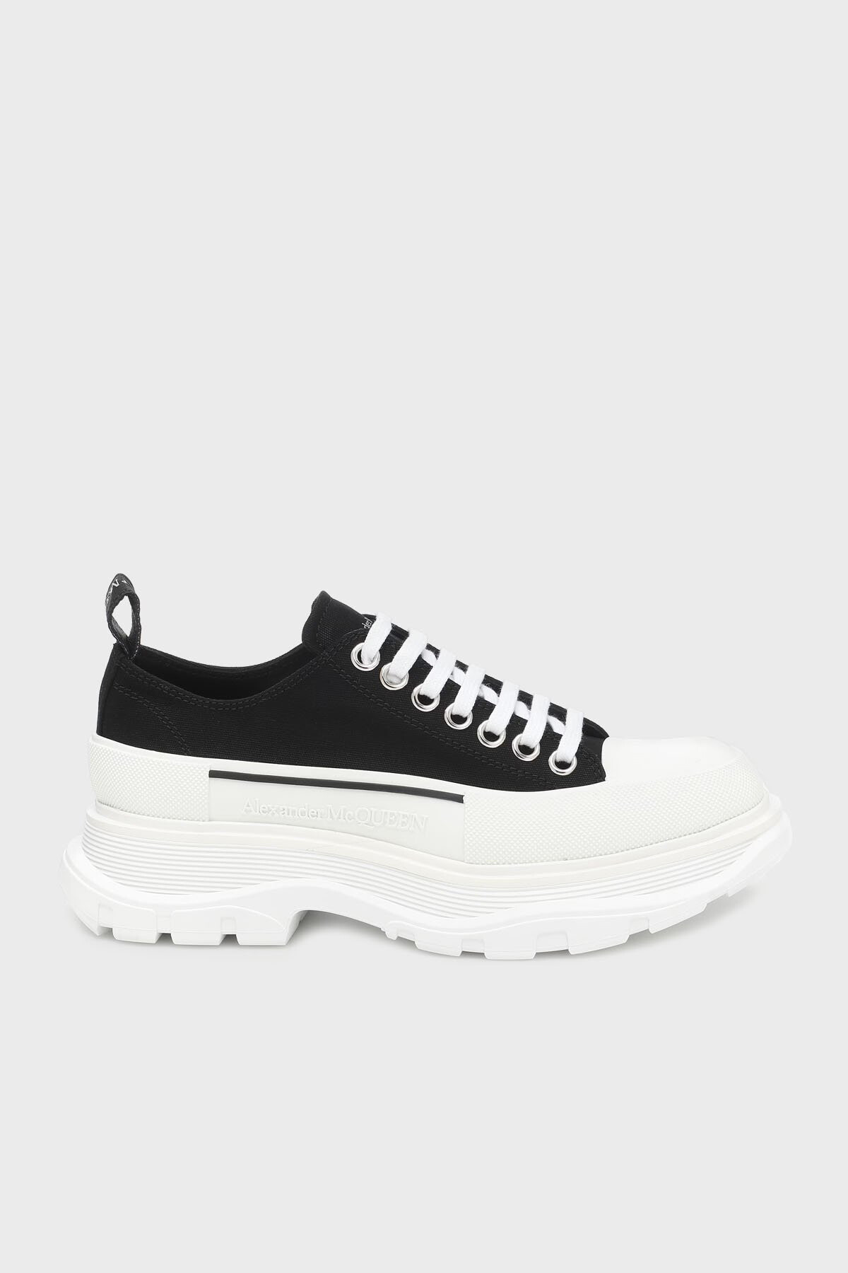 Bu sneakers, klasik kanvas ayakkabı silüetini iddialı ve modern bir tasarımla yeniden yorumluyor. Dayanıklı pamuklu üst yüzeyi, kontrast oluşturan kalın beyaz bağcıklar ve metal kapsüllerle tamamlanır. Ayakkabının en belirgin özelliği, abartılı, tırtıklı ve kalın kauçuk tabanıdır. Bu platform taban, kauçuk burun korumasıyla birleşerek hem cesur bir görünüm sunar hem de güçlü yer tutuşu sağlar. Topuktaki çekme halkası ve taban yanındaki kabartma yazı detayı, bu İtalyan yapımı tasarıma imzasını atar.