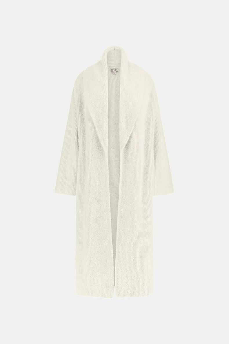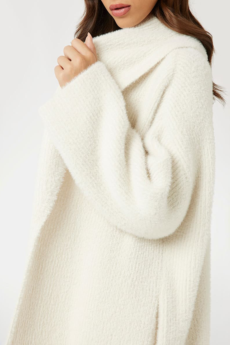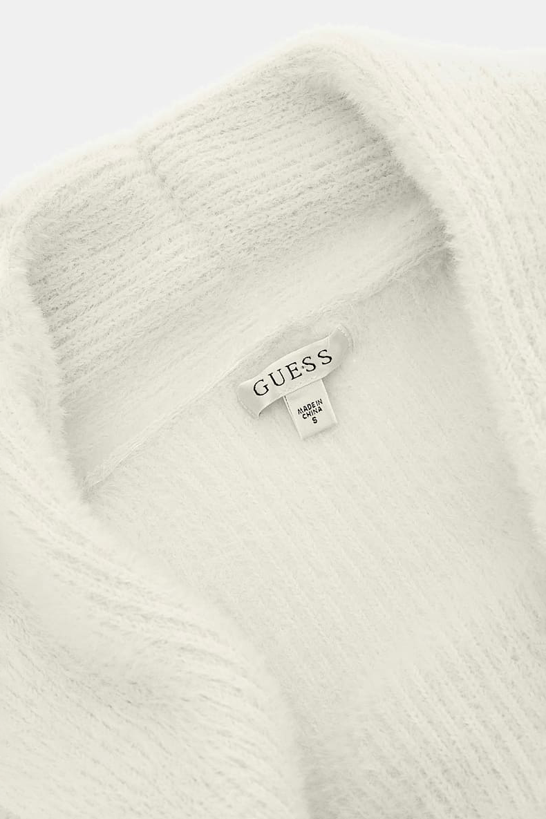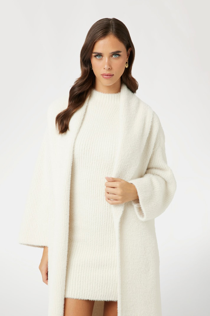 Kadın Tüylü İplikten Relaxed Hırka - Beyaz