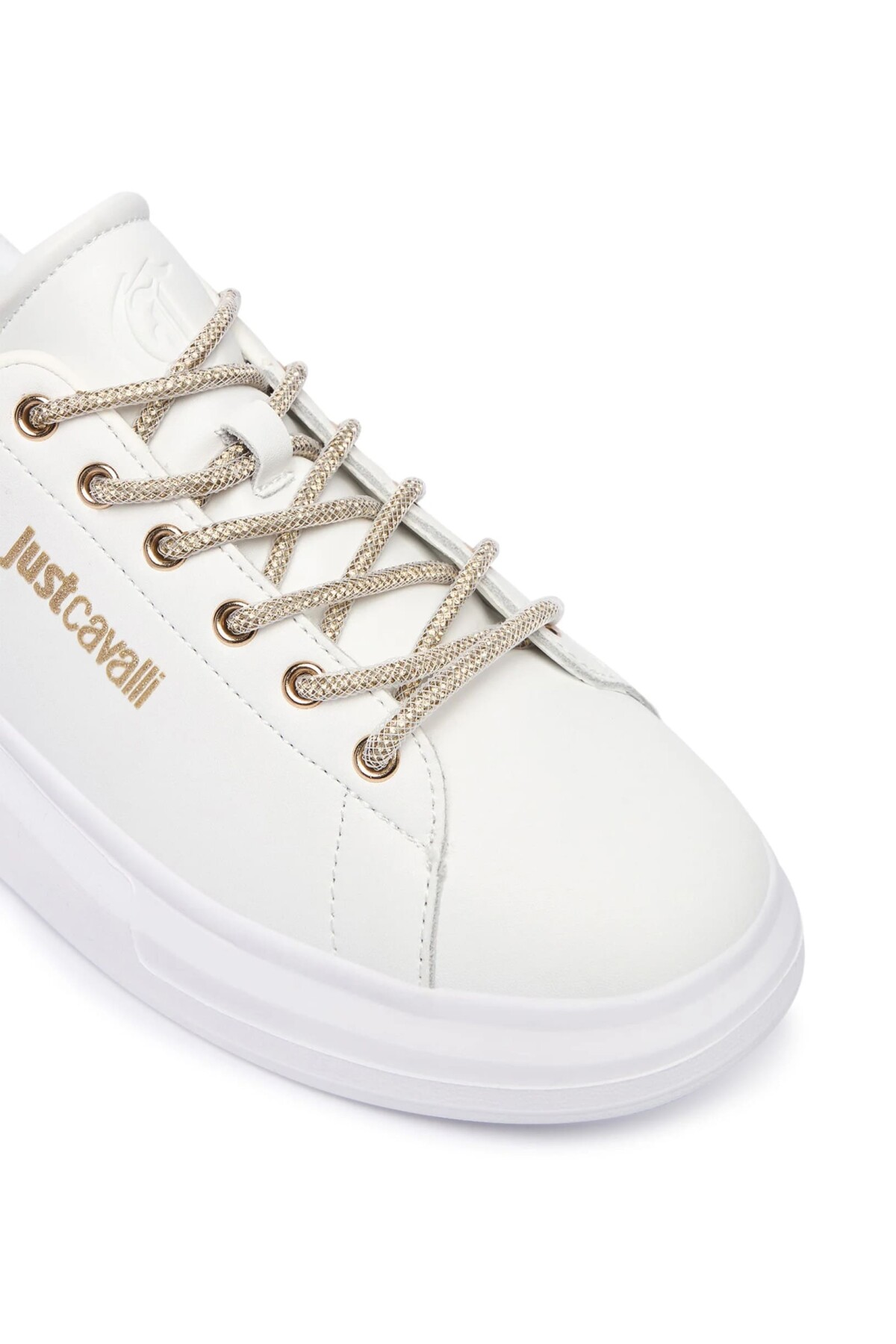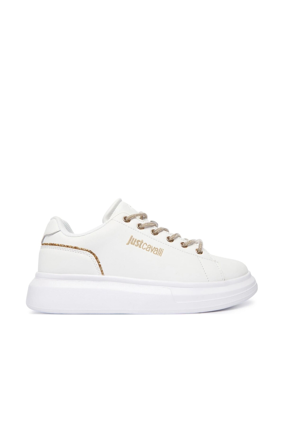 Klasik beyaz sneaker'a göz alıcı bir yorum getiren bu ayakkabı ile adımlarınıza ışıltı katın. Pürüzsüz beyaz yüzeyi, yan kısmındaki altın rengi yazı logosu, parıltılı altın rengi bağcıkları ve topuk kısmını çevreleyen simli şerit detayıyla zenginleştirilmiştir. Deri ve poliüretan karışımı malzemesiyle kalite ve konfor sunarken, kalın beyaz Phylon tabanı hem modern bir görünüm sağlar hem de gün boyu rahat adımlar atmanızı destekler. Gündelik şıklığınıza sofistike bir dokunuş katacak bu sneaker, her kombininize kolayca uyum sağlayacak.