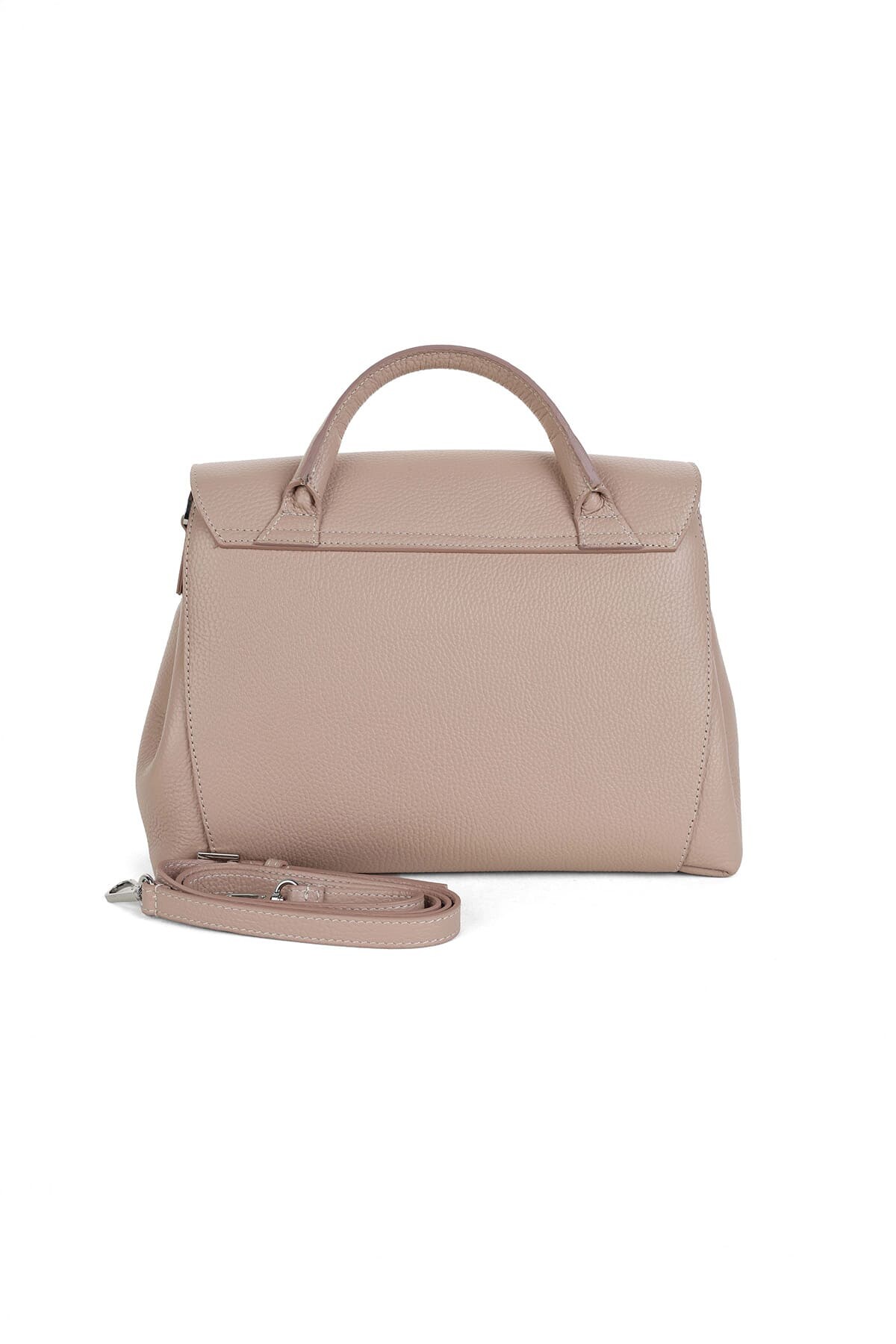 İtalyan zarafetini fonksiyonel tasarımla buluşturan bu el çantası, "Cipria" (Pudra) renginin yumuşak ve romantik tonuyla her kombine sofistike bir dokunuş katar. %100 dana derisinden üretilen grenli dokusu, çantaya hem dayanıklılık hem de lüks bir görünüm kazandırır. Ön kapak üzerinde dikey olarak uzanan deri şerit ve üzerindeki metal harf detayları, tasarıma modern ve karakteristik bir imza atar. Dayanıklı rip-stop naylon astarla kaplanmış iç hacmi günlük ihtiyaçlarınız için ideal bir alan sunar. Sabit kısa sapı ile elde taşınabileceği gibi, ayarlanabilir uzun askısı sayesinde omuzda veya çapraz olarak da konforla kullanılabilir.