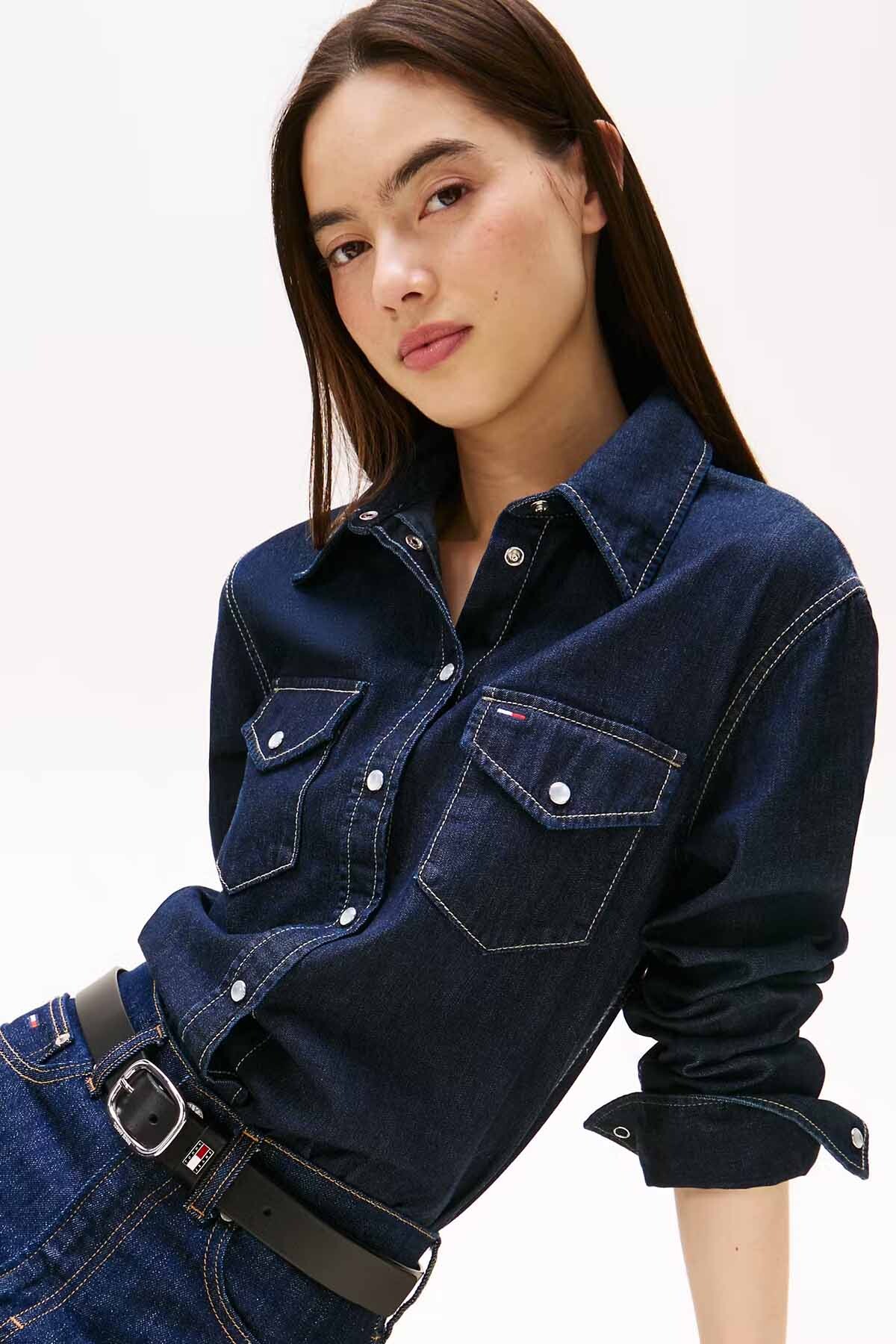 Zamansız bir parça olan kadın uzun kollu denim gömlek, %100 pamuk dokusu ile rahat ve dayanıklı bir kullanım sunar. Düğme kapamalı tasarımı ve göğüs cepleriyle şıklığı ön plana çıkarırken, koyu mavi rengi ile her mevsim kombinlenebilir.