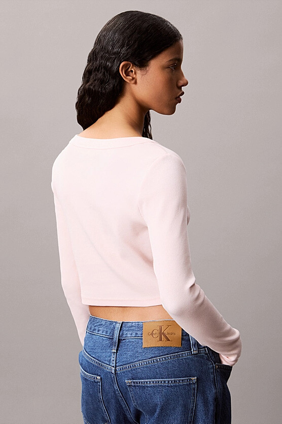 Vücudu saran esnek ve fitilli dokusuyla bu uzun kollu üst, gardırobunuza modern bir dokunuş katıyor. Pamuk ve elastan karışımlı ribana kumaşı, gün boyu hareket özgürlüğü ve mükemmel bir uyum sağlar. Vücut hatlarını zarifçe vurgulayan kısa (cropped) kesimi, yüksek belli altlarla kombinlemek için idealdir. Minimalist dokuma etiket detayı, tasarımın kalitesini belli eder.