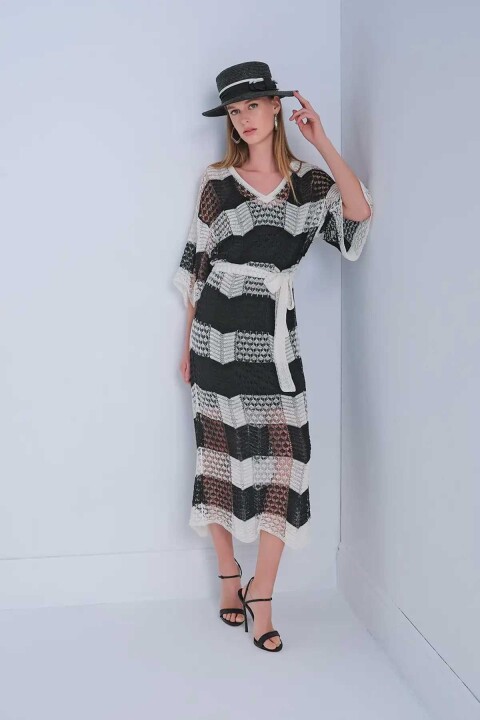 Kadın V Yaka Astarlı Kuşaklı Multi Elbise - Mix
