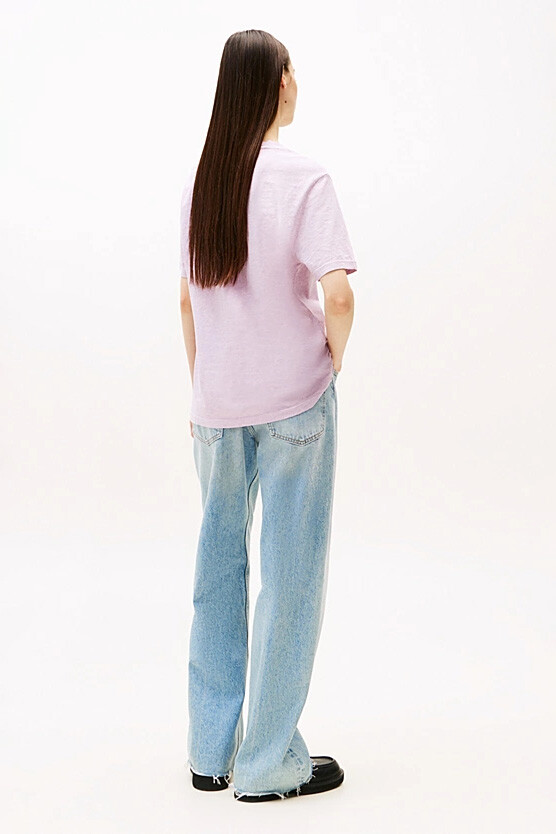 Üniversite stilinden ilham alan bu t-shirt, rahatlığı ve iddialı görünümü bir araya getiriyor. Özel 'aşırı boyalı' tekniğiyle renklendirilmiş olan bu parça, her ürüne kendine has, hafifçe eskitilmiş bir karakter kazandırır. Rahat (relaxed) kesimiyle gün boyu konfor sunarken, göğsündeki büyük baskılı logosu kolej ruhunu yansıtır.