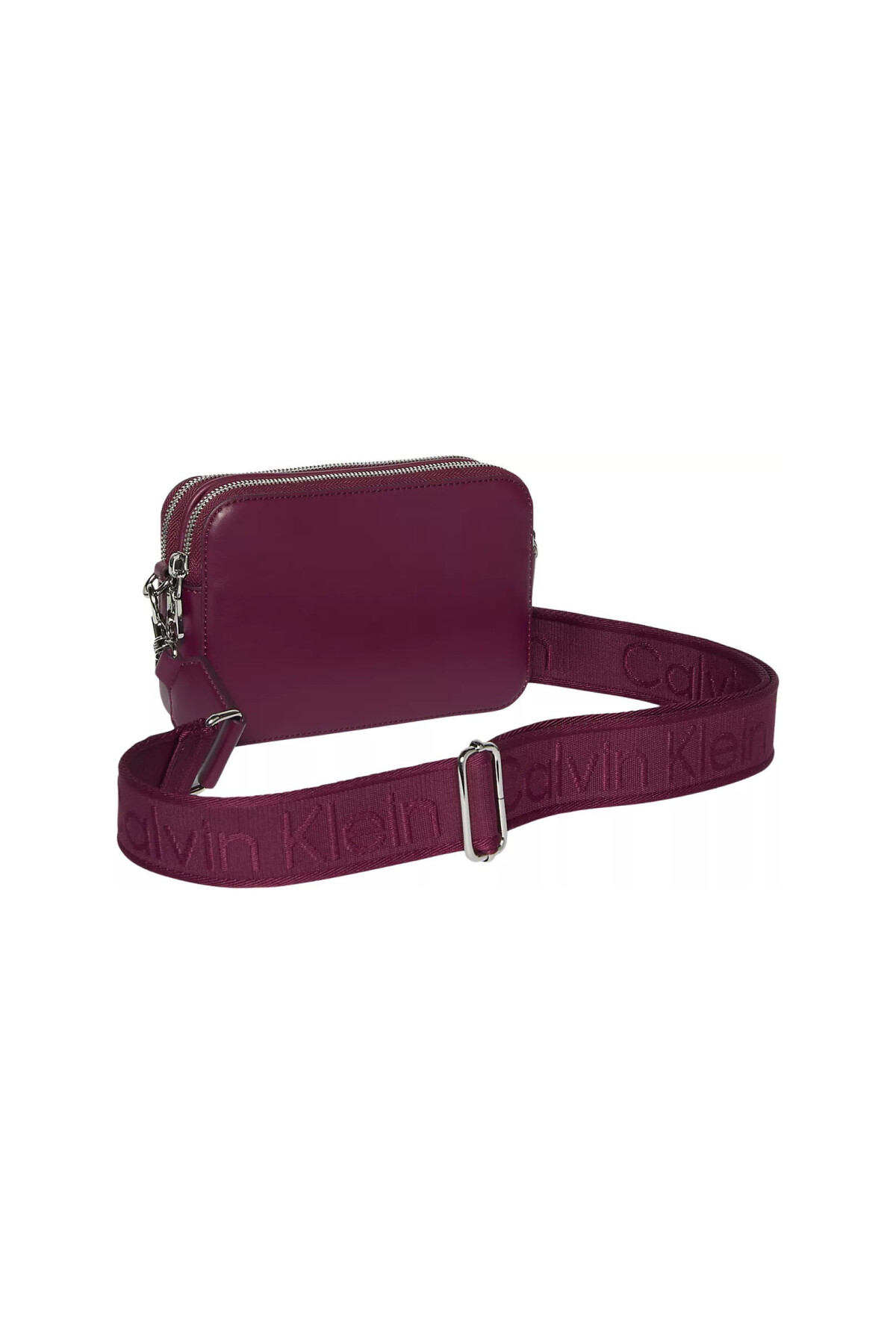 Çantanın en belirgin özelliği, eşyalarınızı düzenli tutmanızı sağlayan iki adet fermuarlı ana bölmesidir. Ön panelin alt kısmında yer alan gümüş tonlarındaki rafine "Calvin Klein" ibaresi, markanın ikonik imzasını taşır. Tasarım, markanın adını taşıyan geniş ve sportif dokuma (webbing) askısı ile modern bir estetik kazanırken, gümüş renkli metal donanımlar bu şıklığı tamamlar. 65 cm boyundaki ayarlanabilir askısı, çantayı hem omuzda hem de çapraz olarak konforla kullanmanıza imkan tanır.