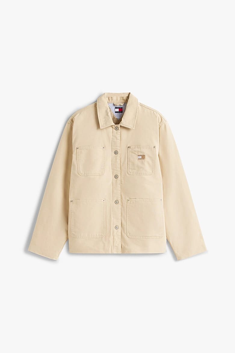 İş giyiminden ilham alan bu modern ceket, hem dayanıklılığı hem de stil sahibi duruşu bir araya getiriyor. %100 pamuklu, sağlam dokulu kumaşıyla mevsim geçişleri için ideal bir dış katman sunar. Rahat kesimi, tişörtler ve kazaklar üzerine kolayca giyilebilmesini sağlarken, öndeki büyük yama cepleri tasarıma fonksiyonel ve havalı bir karakter katar. Göğüs cebi üzerindeki zarif logo işlemesi, ceketin minimalist şıklığını tamamlar.