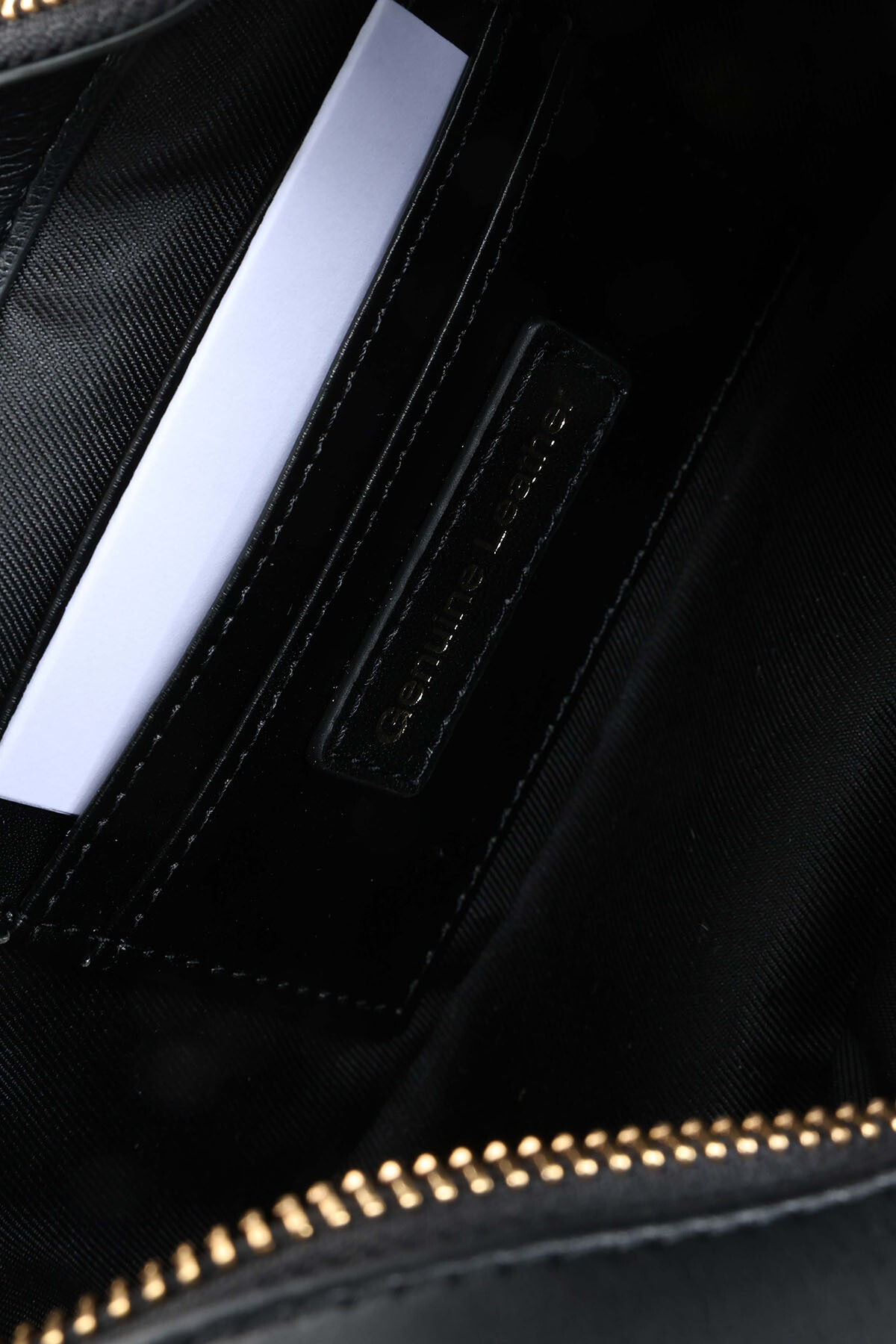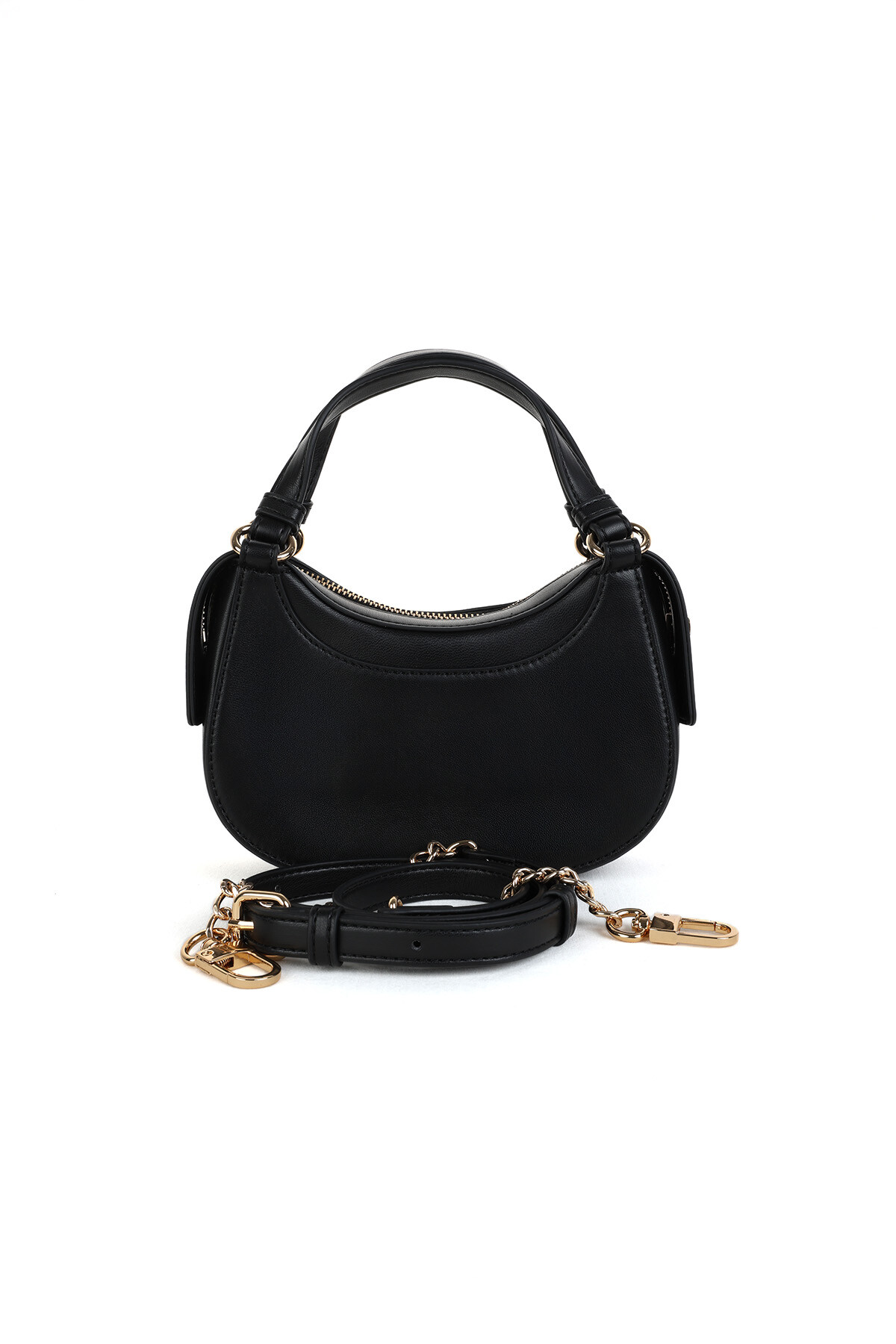 Siyahın zamansız asaletini altın rengi metal detayların ışıltısıyla buluşturan bu tasarım, pürüzsüz deri yüzeyi ve modern yarım ay formuyla dikkat çekiyor. Ön yüzünde yer alan altın rengi harf ve kalp figürleri, çantaya romantik ve lüks bir dokunuş katarken; yanlardaki zincir detayları tasarıma hareket kazandırır. Kompakt yapısına rağmen fermuarlı ana bölmesiyle temel eşyalarınızı güvenle taşımanızı sağlar. 11 cm'lik sabit el sapı ile şık bir el çantası olarak kullanabileceğiniz model, yanında gelen ayarlanabilir ve çıkarılabilir uzun askısı sayesinde omuzda veya çapraz olarak da taşınarak stilinize fonksiyonellik katar.