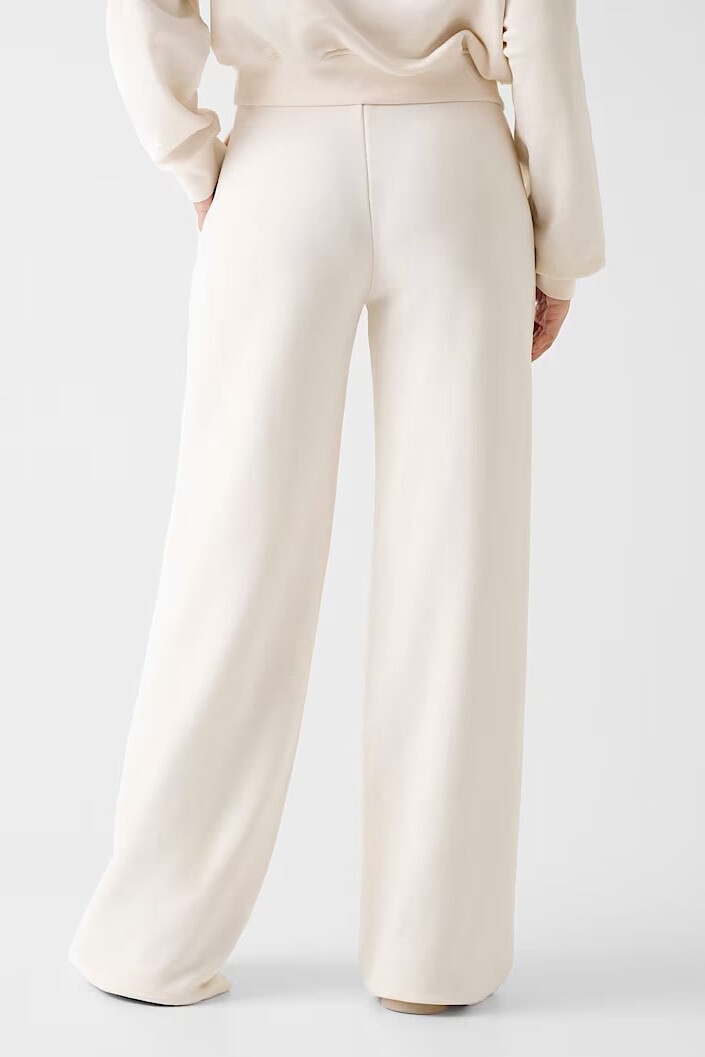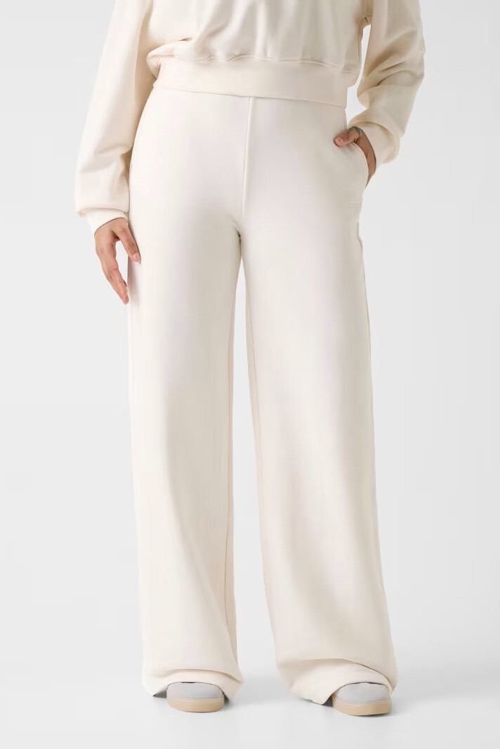 Kırık beyaz renginin saf ve dingin tonunu, modern sokak stilinin yükselen trendi olan geniş paça relaxed fit kesimiyle buluşturan Yayoi eşofman altı, konforu zarafetle sunuyor. %80 pamuk ve %20 polyester karışımından oluşan dokusu, cildinize nefes aldırırken tok duruşuyla şık bir silüet yaratıyor. Yüksek bel tasarımı ve aşağıya doğru genişleyen dökümlü paça yapısı, hem bacak boyunu olduğundan uzun gösteriyor hem de gün boyu hareket özgürlüğü sağlıyor. Yan cebin hemen altında yer alan nakış işlemeli minimalist logo detayı, tasarıma sessiz ve kaliteli bir dokunuş ekliyor.