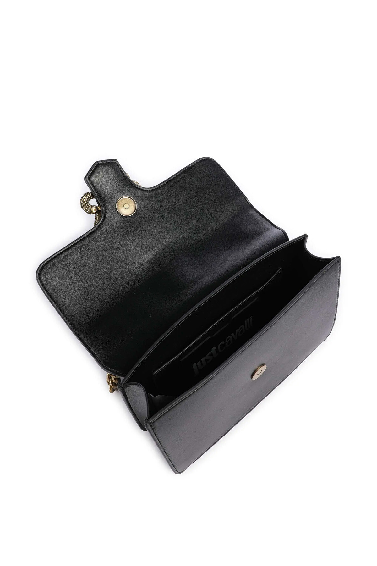 Just Cavalli'nin bu göz alıcı çapraz askılı çantası, %100 poliüretan malzemeden üretilmiştir. Ön kapakta yer alan ikonik, antik altın rengi yılan motifli metal toka, çantaya markanın cesur ve özgün kimliğini katıyor. Ayarlanabilir parlak altın rengi zincir askısı, hem omuzda hem de çapraz kullanım imkanı sunarak çok yönlülük sağlar. Mıknatıslı kapaklı ana bölmesi, temel eşyalarınız için güvenli bir alan sunarken, bu çanta gündüzden geceye şıklığınızı tamamlayacak iddialı bir aksesuardır.