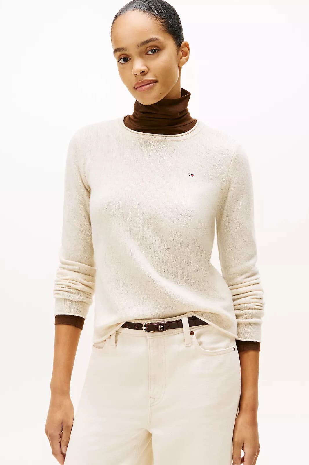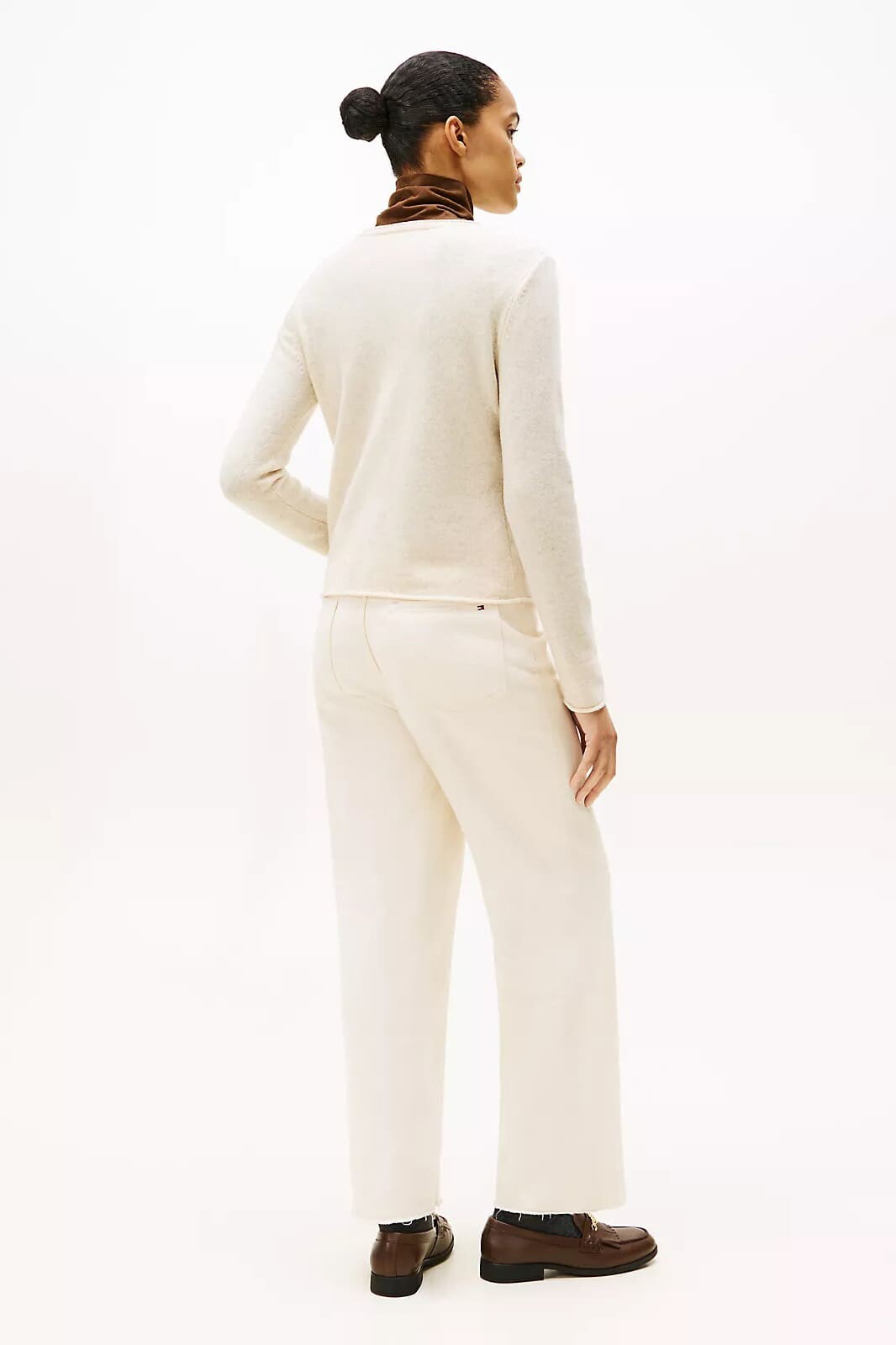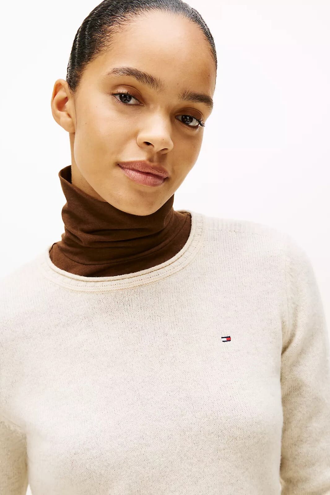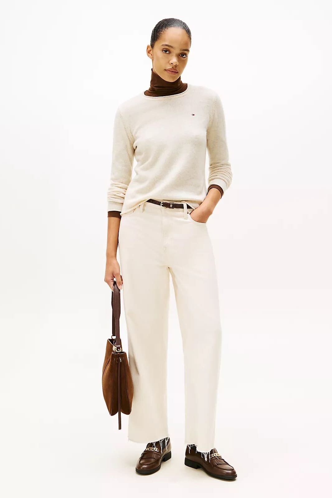 Lüks ve çok yönlü bir gardırop klasiği olan bu kazak, şık ve sıcacık görünümler yaratmak için idealdir. Saf, %100 yumuşak yünden üretilen bu triko, benzersiz bir sıcaklık ve cildinize nazik bir dokunuş sunar. Zamansız regular kalıbı, klasik bisiklet yakası ve zarif ekru rengiyle her kombine kolayca uyum sağlar. Göğüs kısmındaki minimalist nakış amblem ise sade tasarıma rafine bir karakter katar.