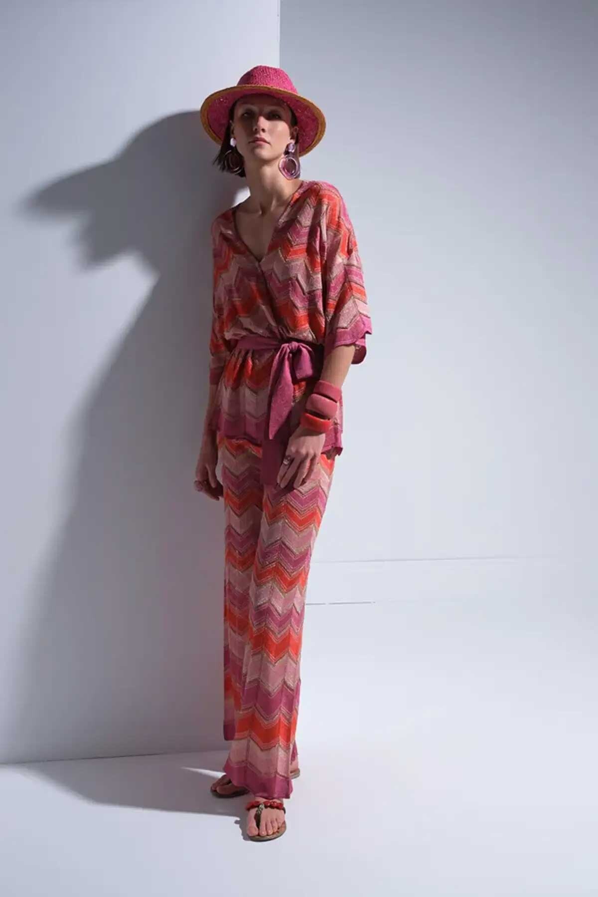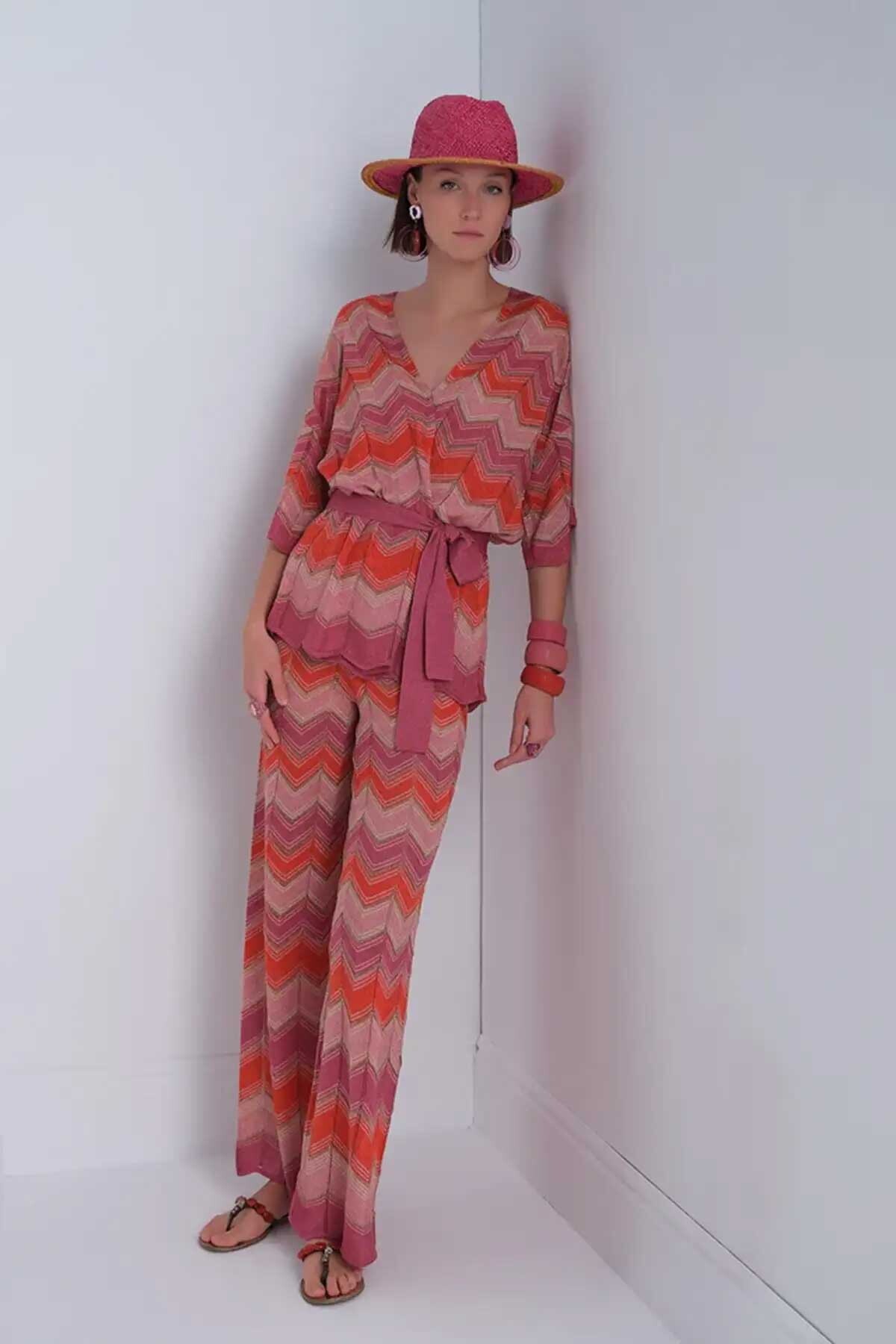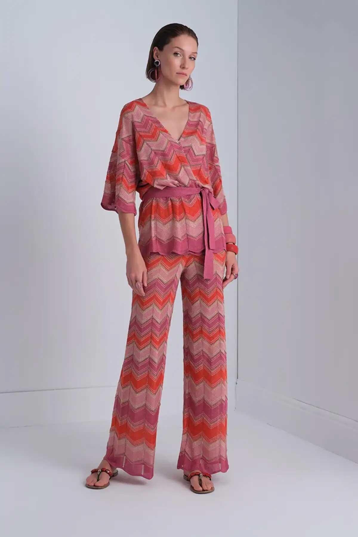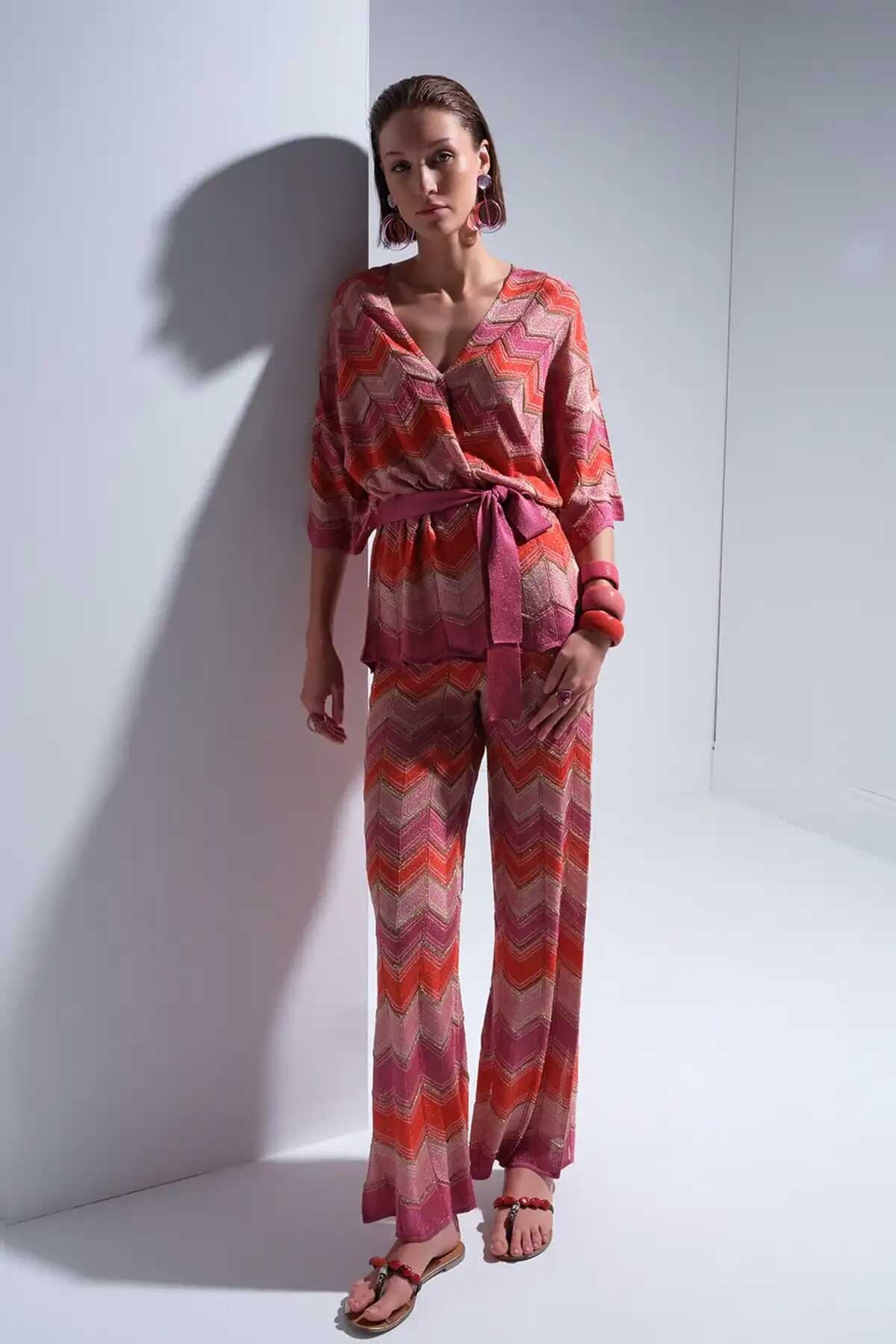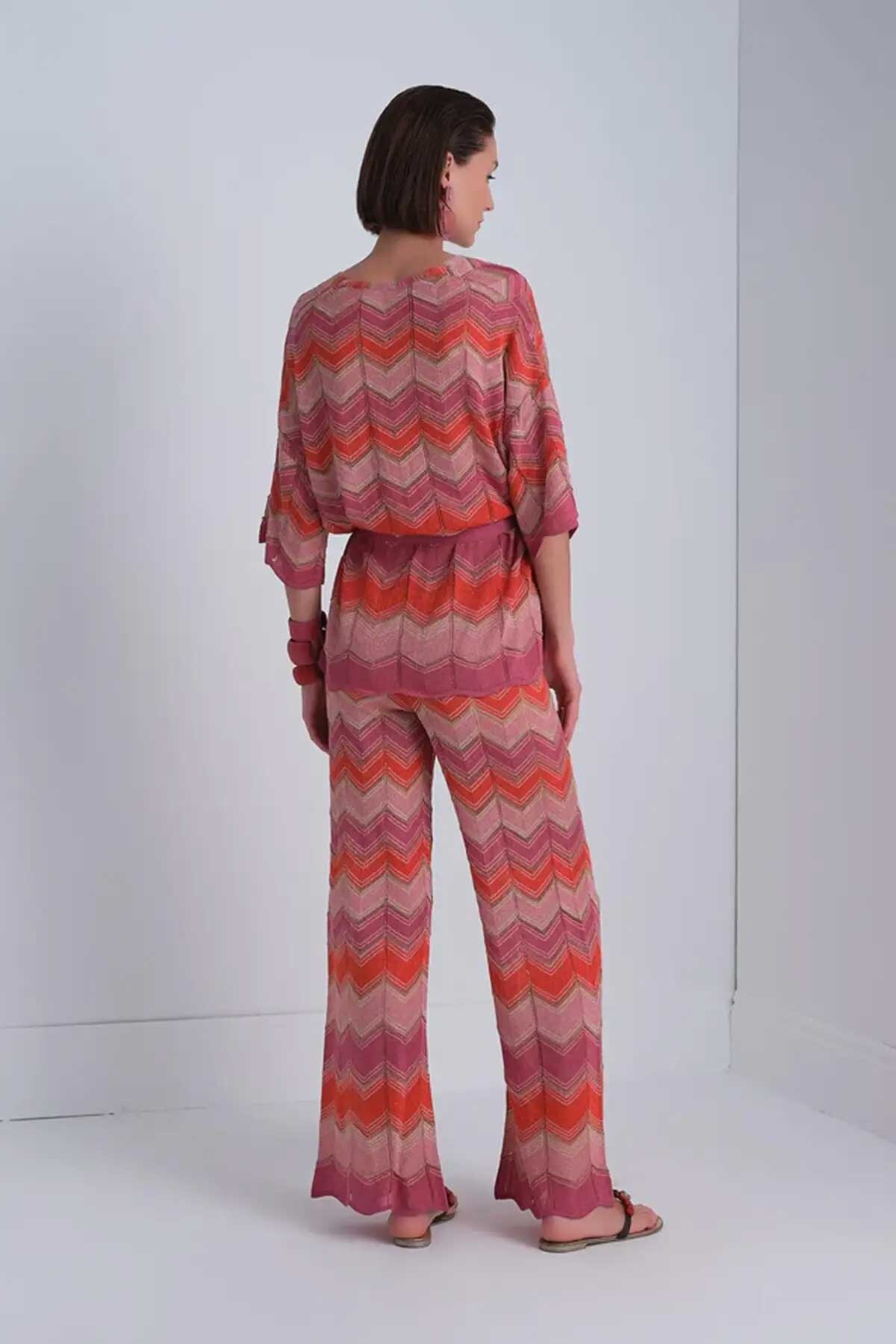 Kadın Zikzak Desenli Beli Lastikli Simli Pantolon - Mix